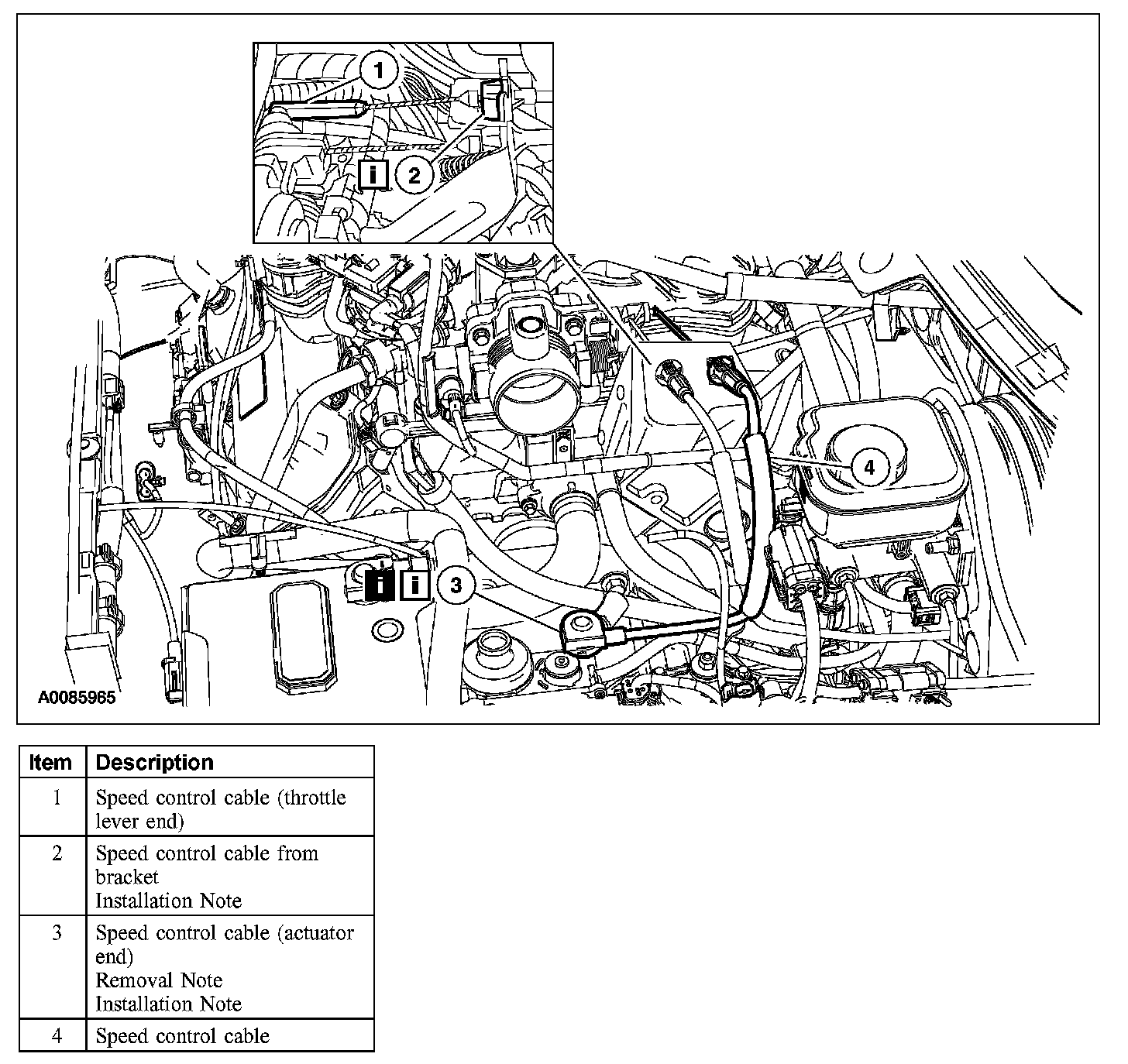 1. NOTE: Incorrect wrapping of the speed control cable core wire around the speed control actuator pulley may result in a high idle condition.