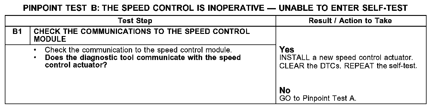 PINPOINT TEST B: THE SPEED CONTROL IS INOPERATIVE - UNABLE TO ENTER SELF-TESTTest B1: