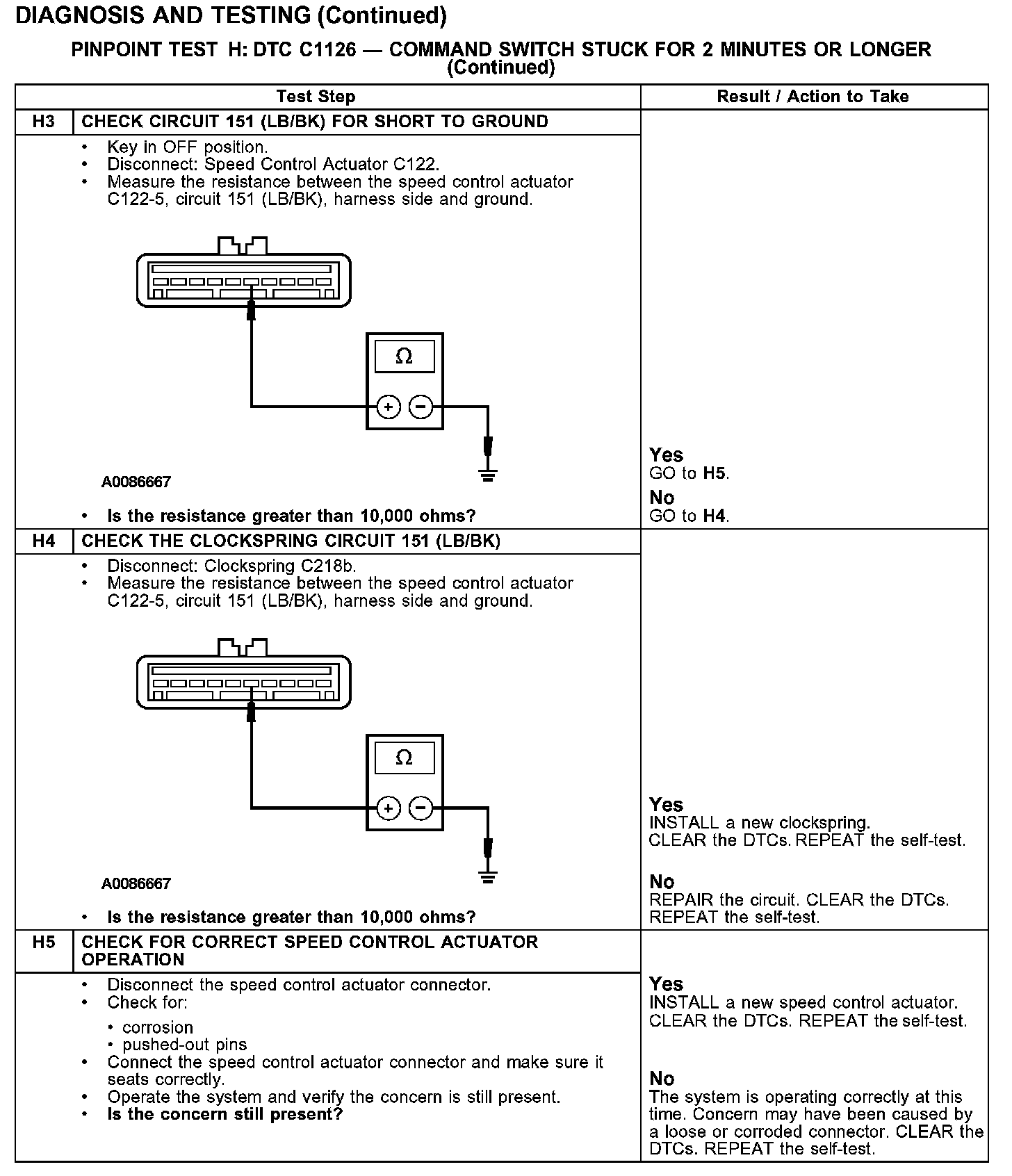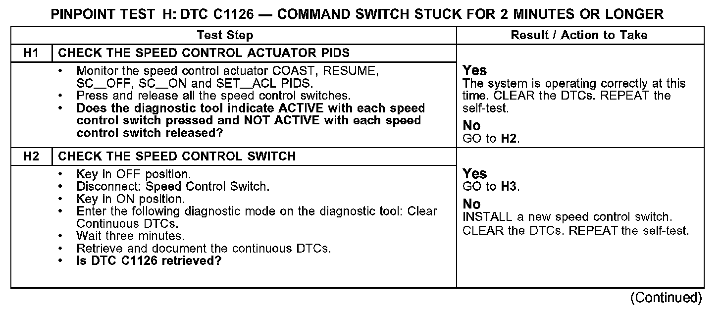 PINPOINT TEST H: DTC C1126 - COMMAND SWITCH STUCK FOR 2 MINUTES OR LONGERTest H1-H2: