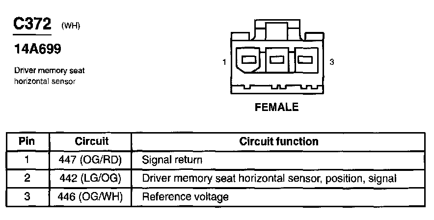 Driver Memory Seat Horizontal Sensor