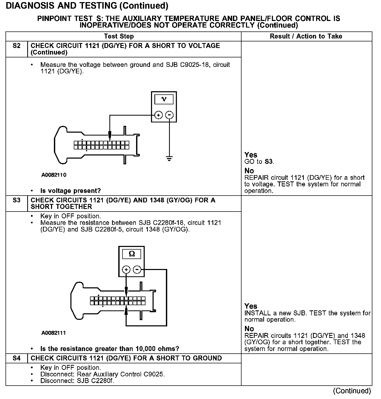 PINPOINT TEST S: THE AUXILIARY TEMPERATURE AND PANEL/FLOOR CONTROL IS INOPERATIVE/DOES NOT OPERATE CORRECTLYTest S1-S2: