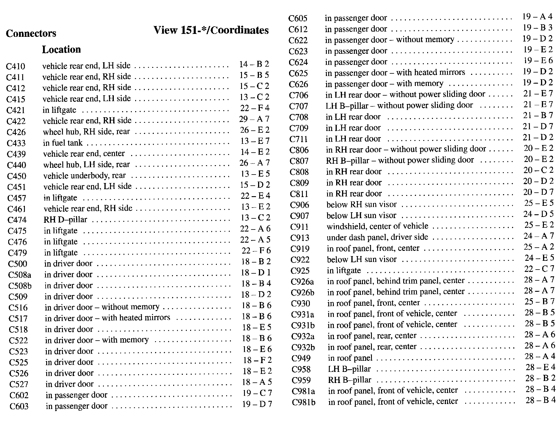 PLEASE NOTE: If a link on the Connector Location Index to a View is not provided, that means that the Connector and/or View in question does NOT apply to the vehicle model selected.