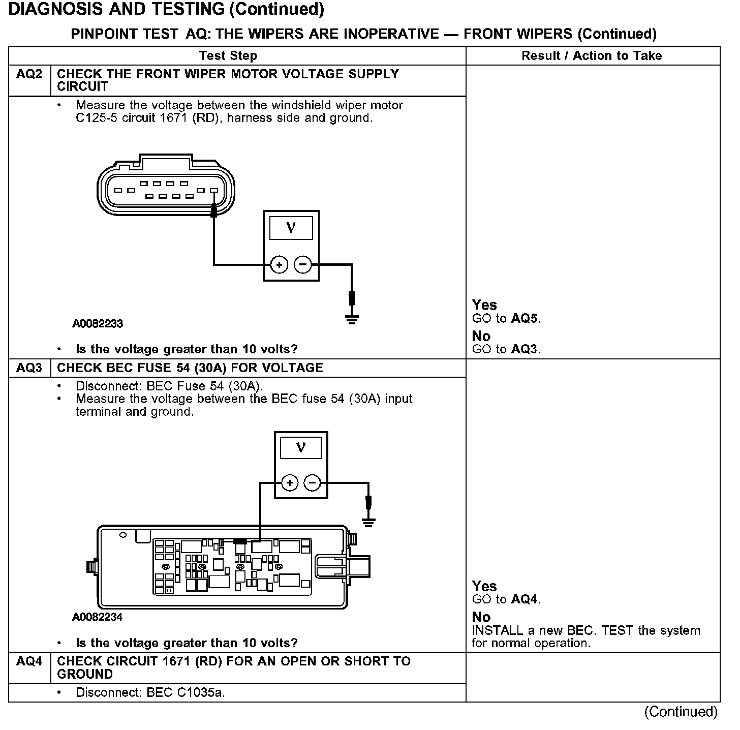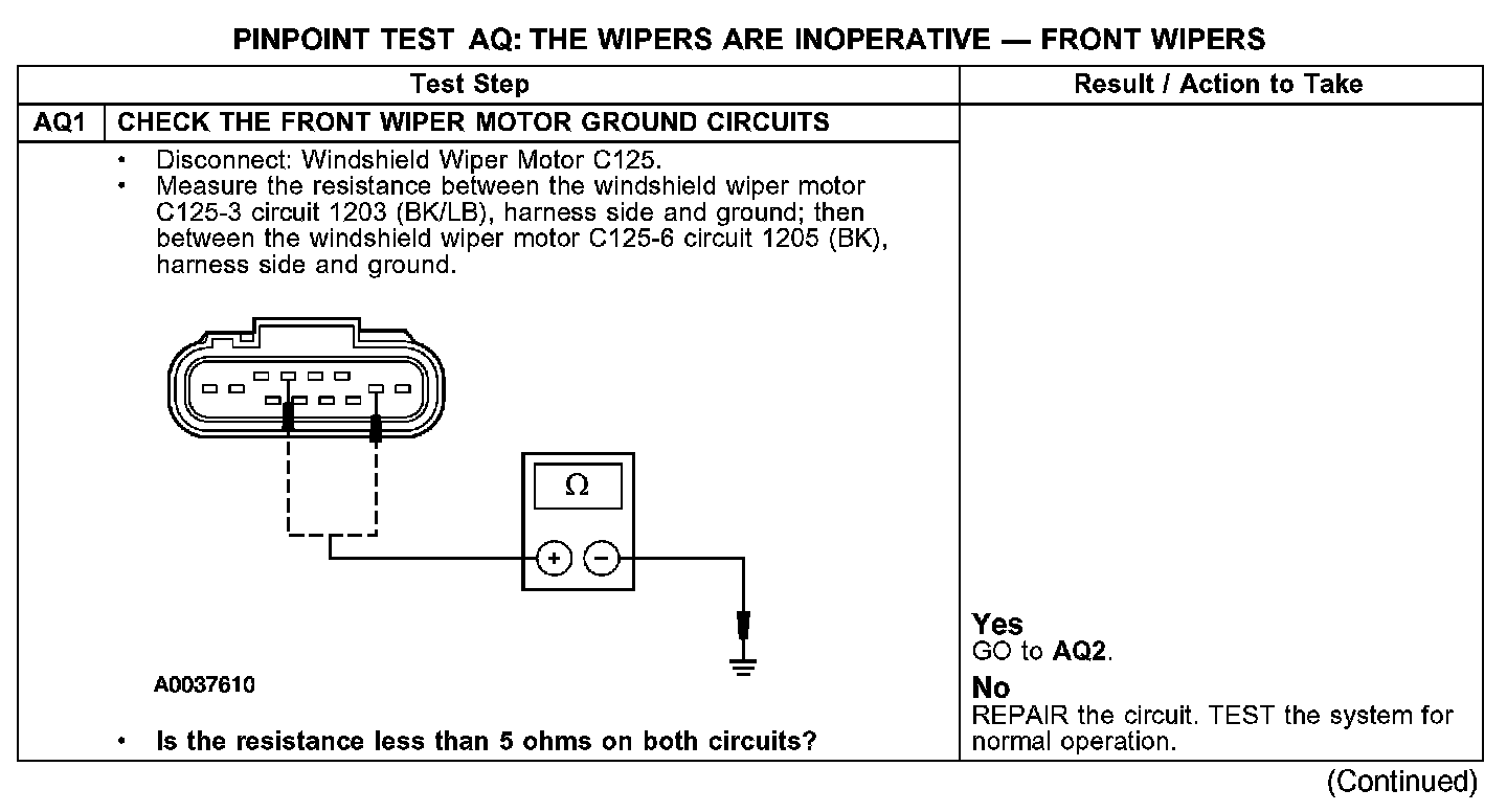 PINPOINT TEST AQ: THE WIPERS ARE INOPERATIVE - FRONT WIPERSTest AQ1: