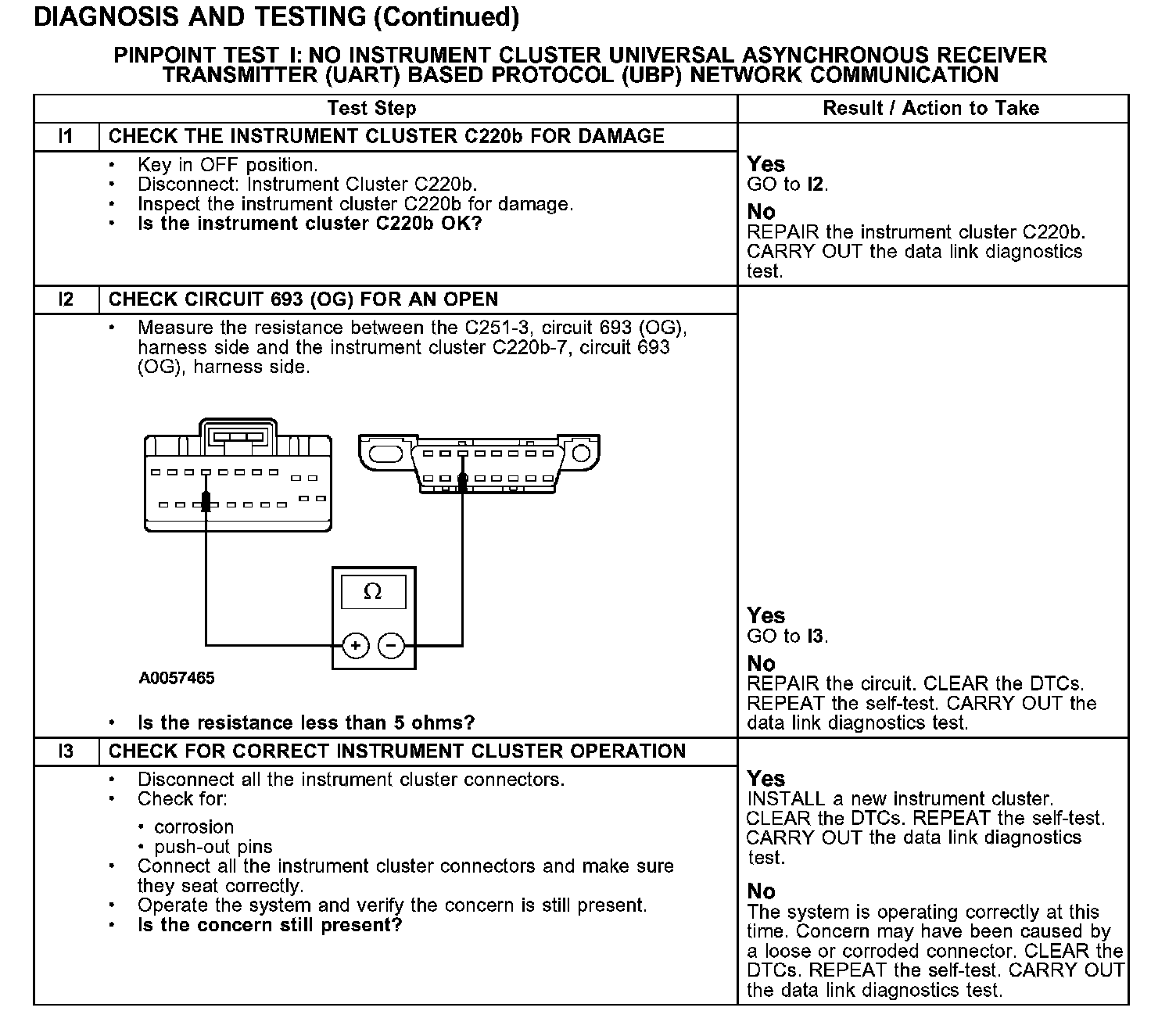 PINPOINT TEST I: NO INSTRUMENT CLUSTER UNIVERSAL ASYNCHRONOUS RECEIVER TRANSMITTER (UART) BASED PROTOCOL (UBP) NETWORK COMMUNICATIONTest I1-I3: