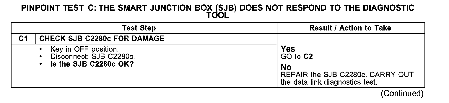 PINPOINT TEST C: THE SMART JUNCTION BOX (SJB) DOES NOT RESPOND TO THE DIAGNOSTIC TOOL