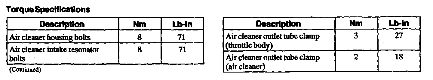 Torque Specifications: