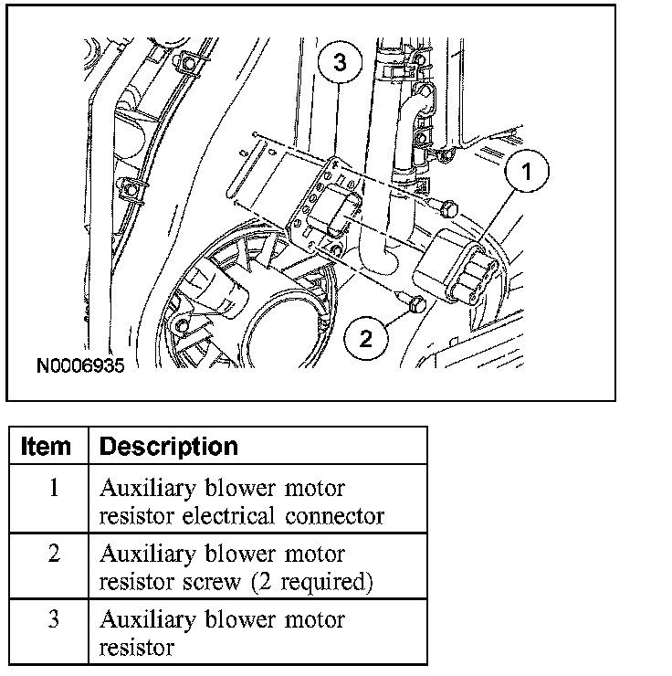3. Remove the 2 auxiliary blower motor resistor screws.