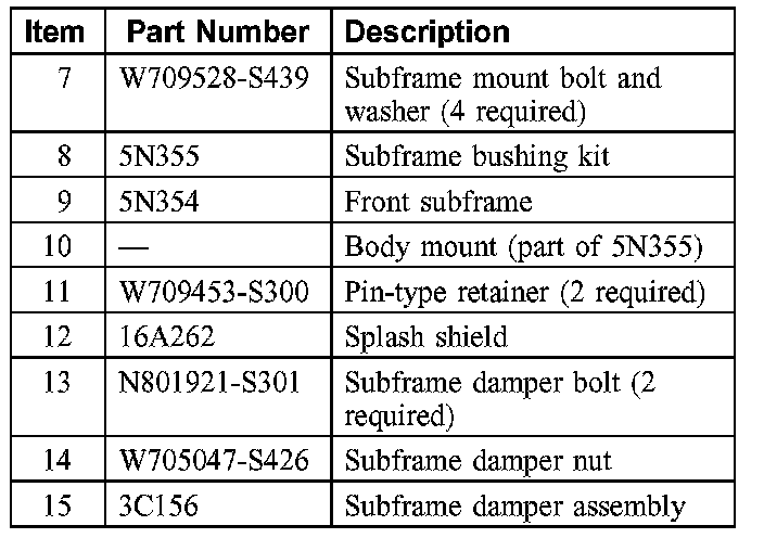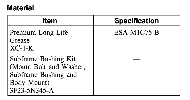NOTE: The subframe bushing, body mount, bolt and washer are installed as a kit.
