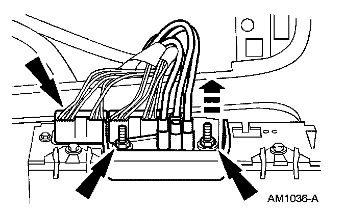 - Disconnect the wire harness connectors and remove the climate control assembly.