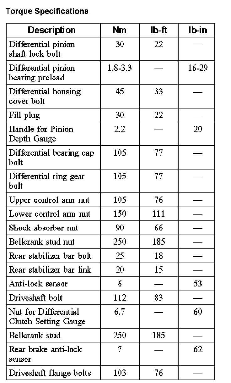 Torque Specifications: