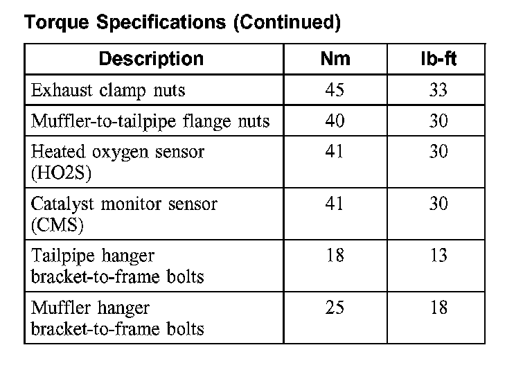 Torque Specifications: