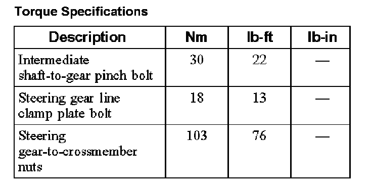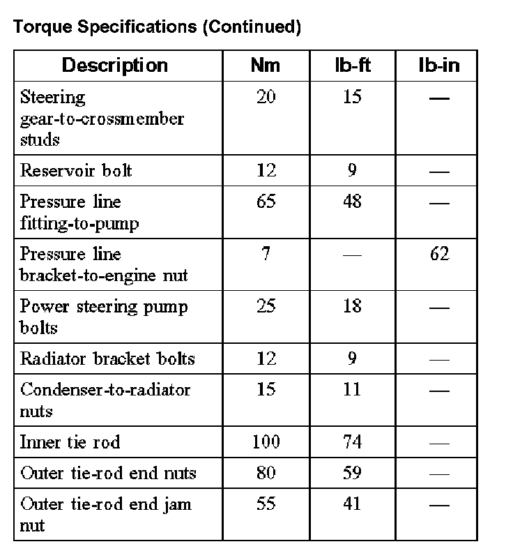 Torque Specifications (Part 1):