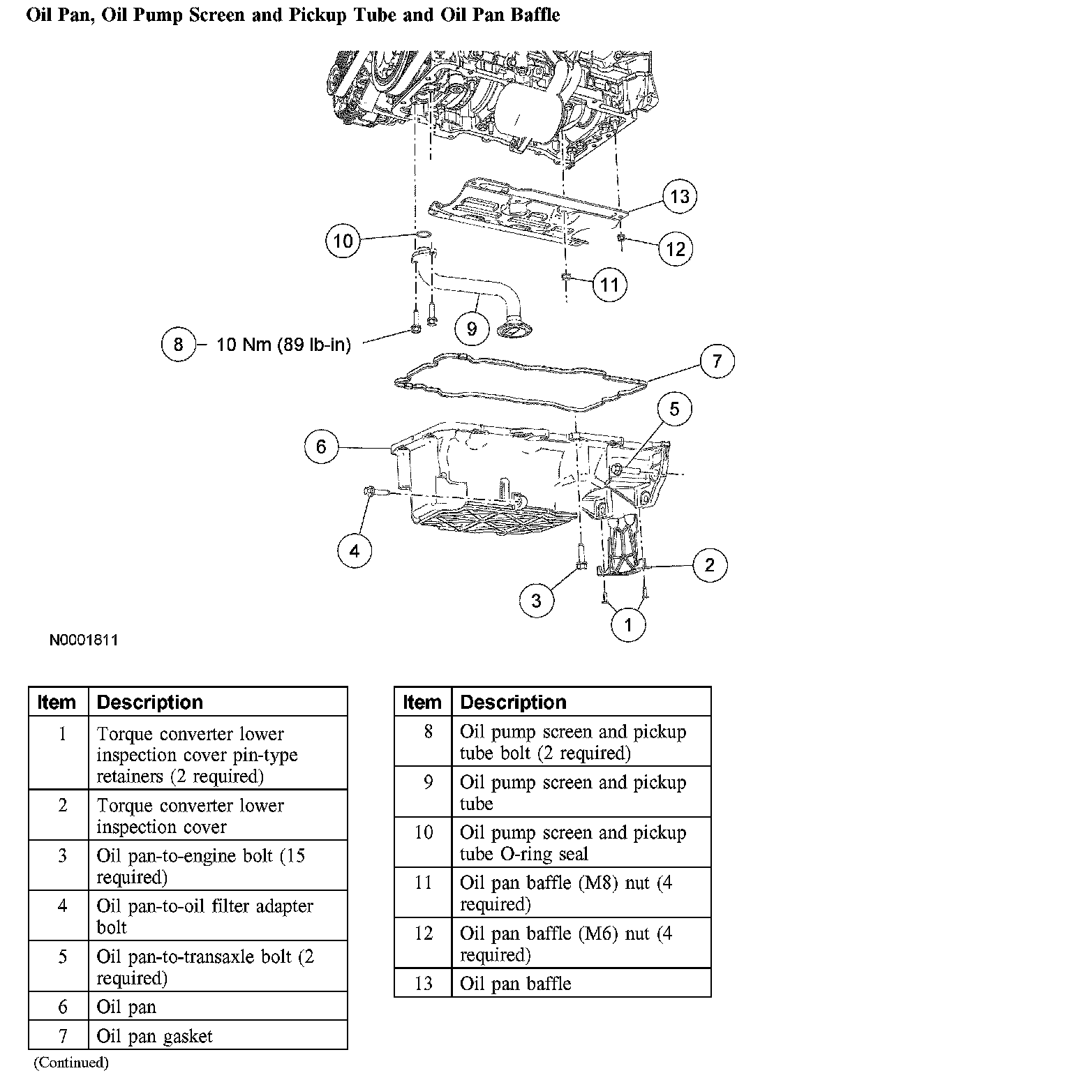 Oil Pan, Oil Pump Screen and Pickup Tube and Oil Pan Baffle: