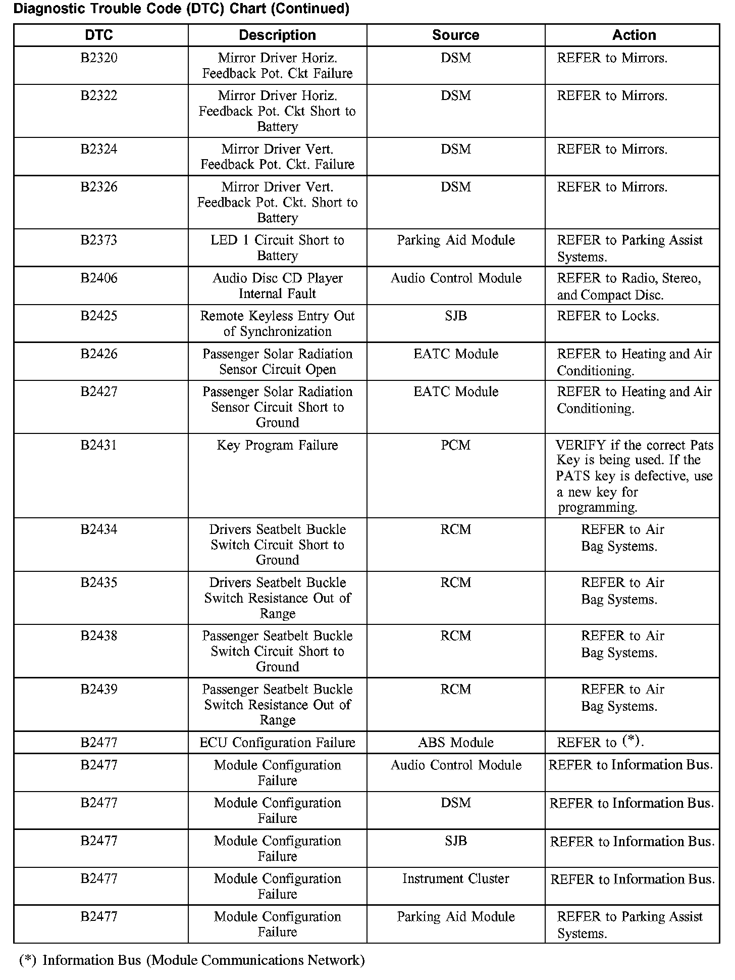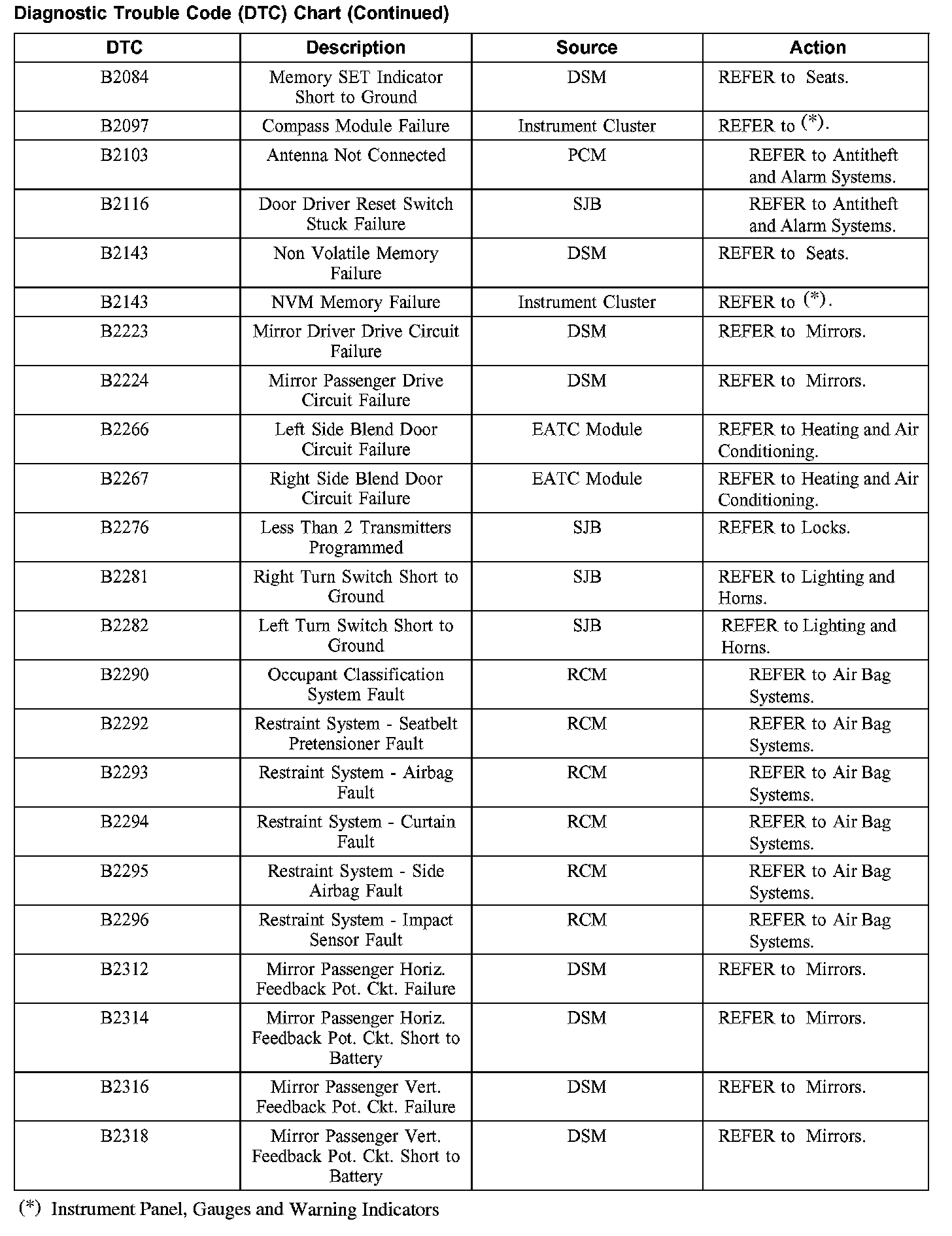 DIAGNOSTIC TROUBLE CODE CHARTB1003-B1318: