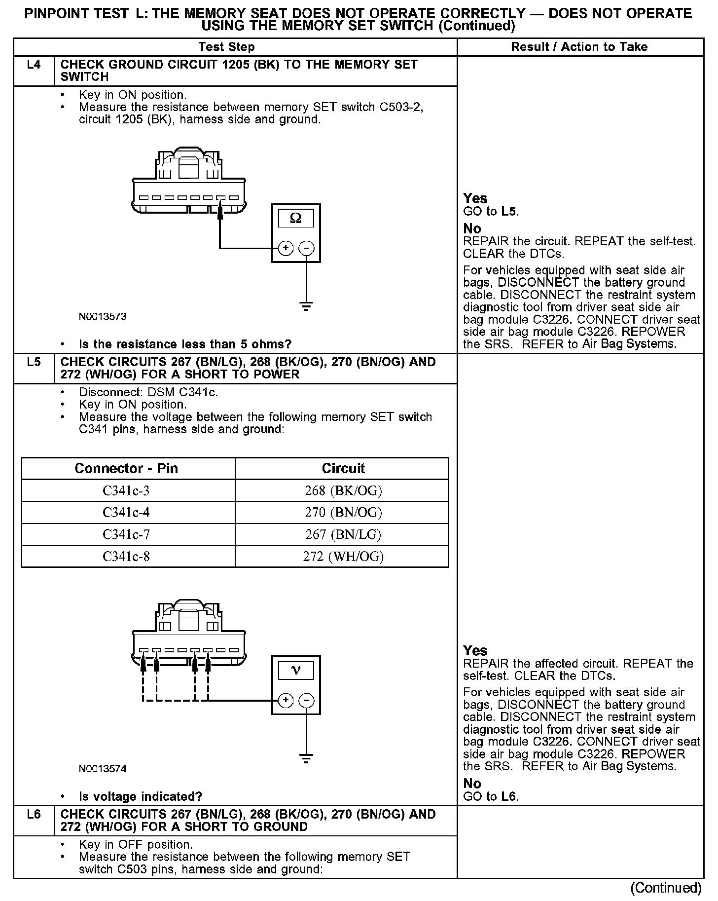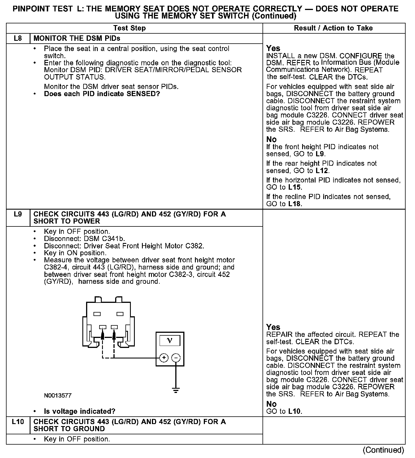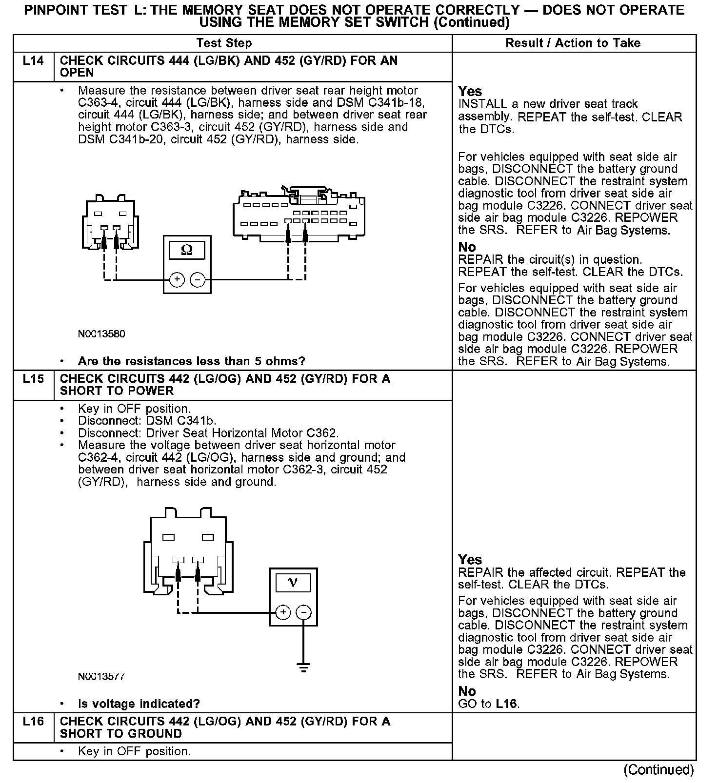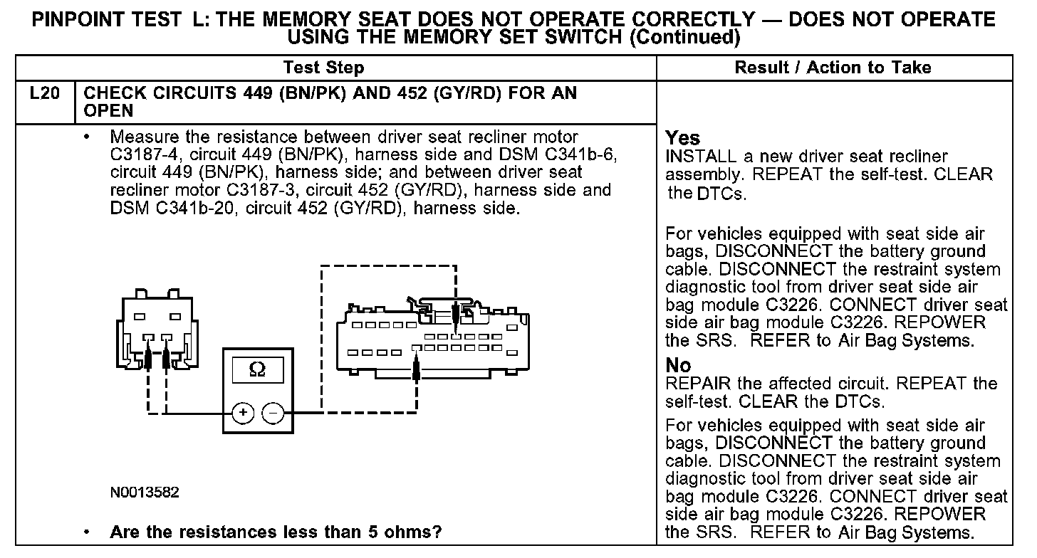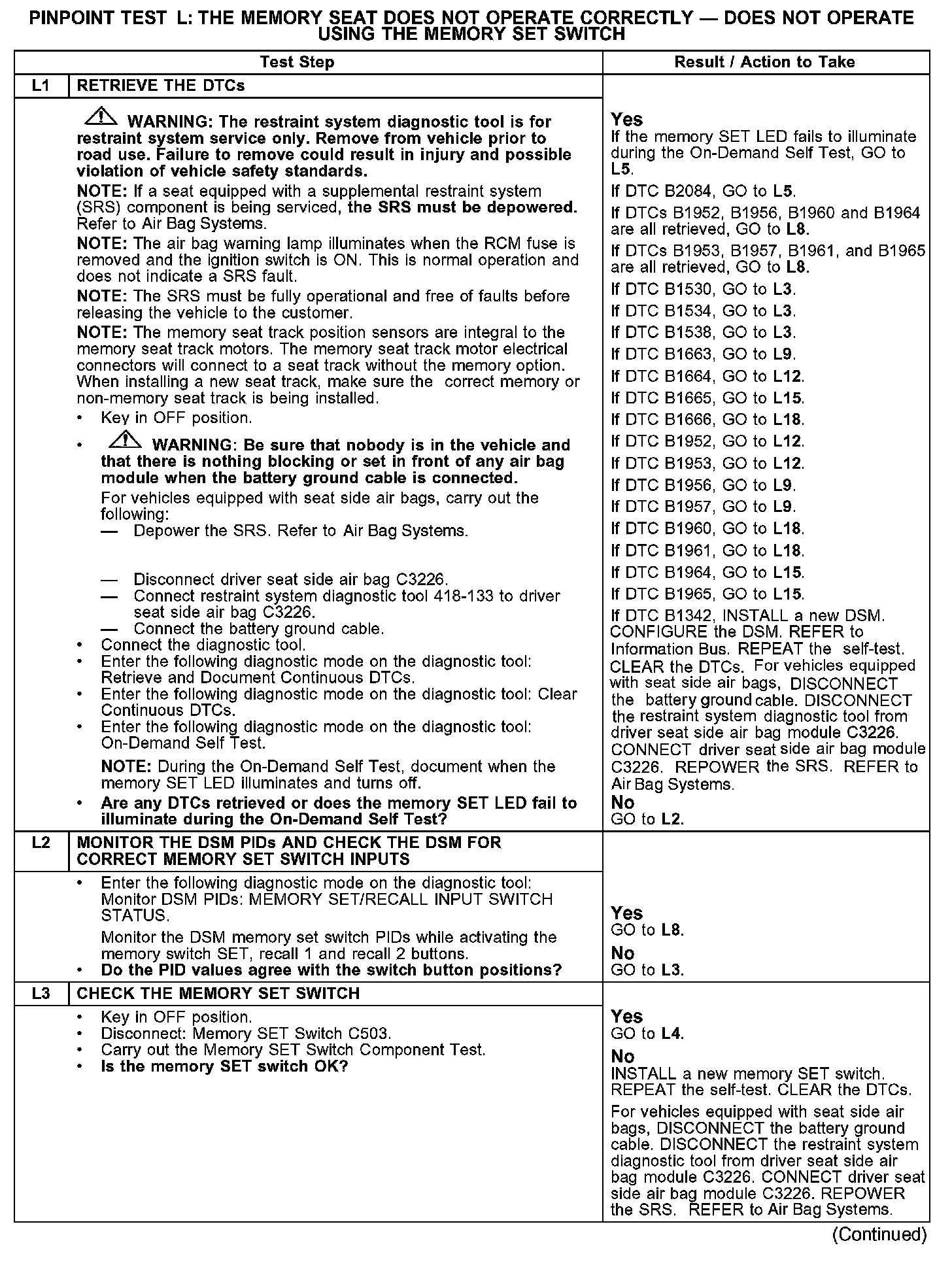 PINPOINT TEST L: THE MEMORY SEAT DOES NOT OPERATE CORRECTLY - DOES NOT OPERATE USING THE MEMORY SET SWITCHL1-L3: