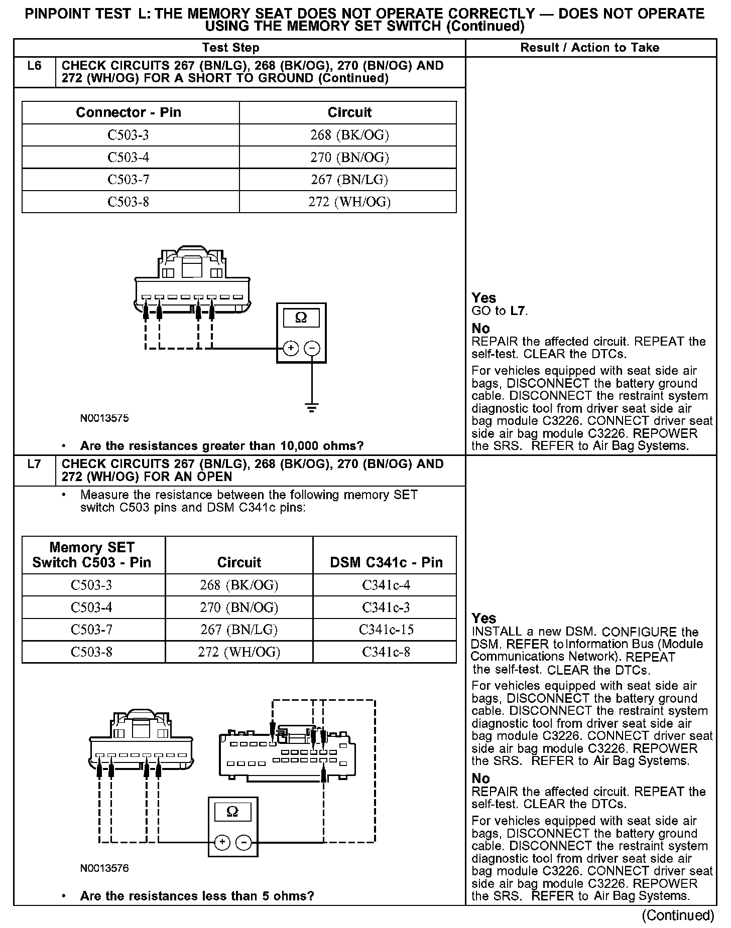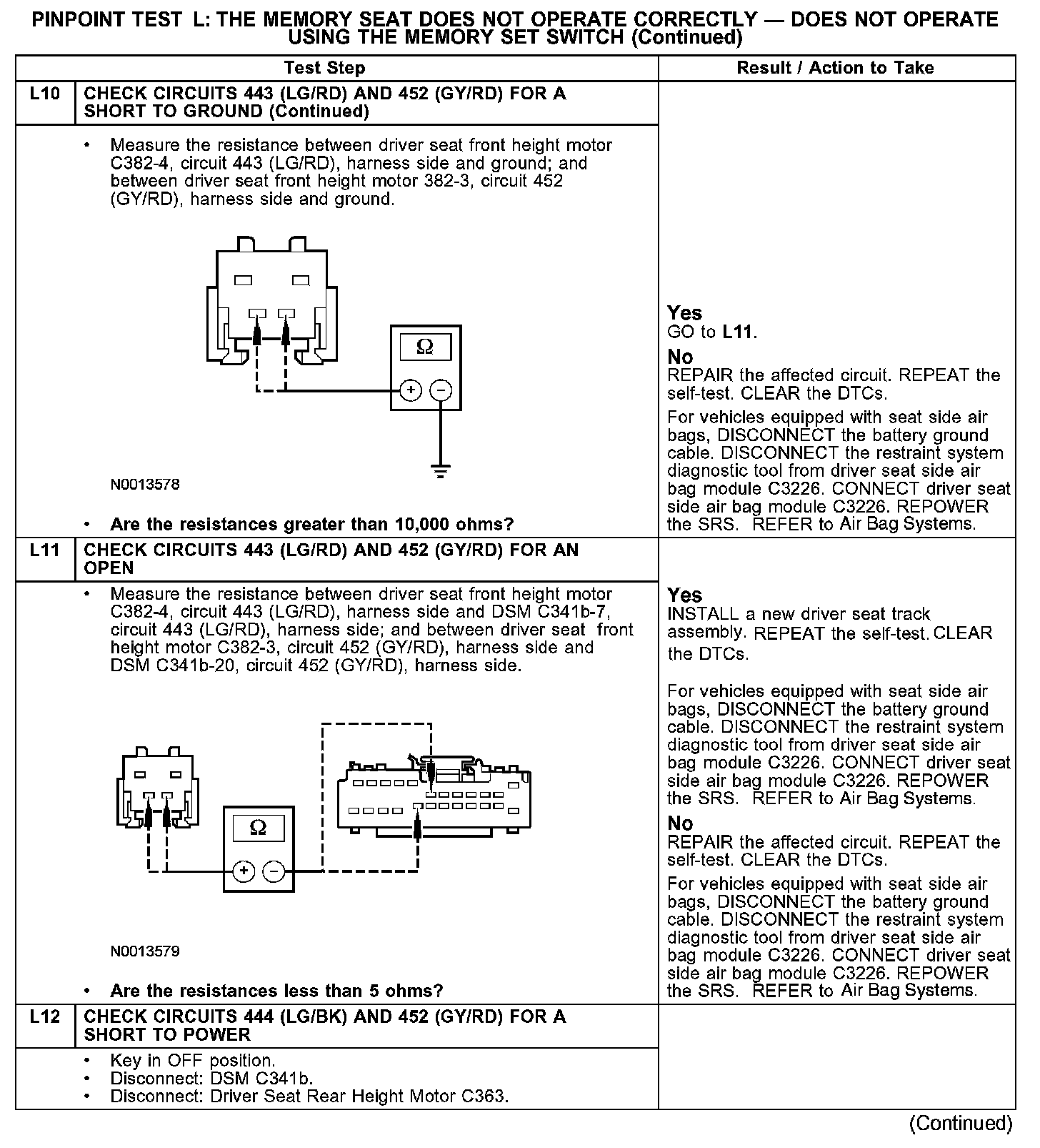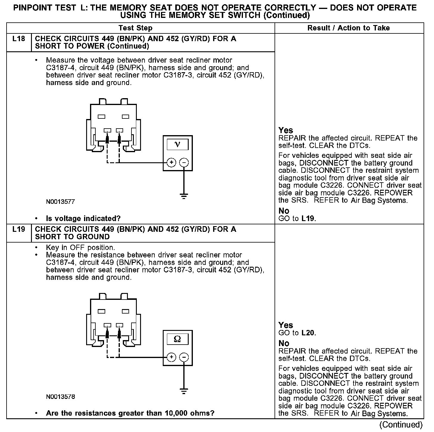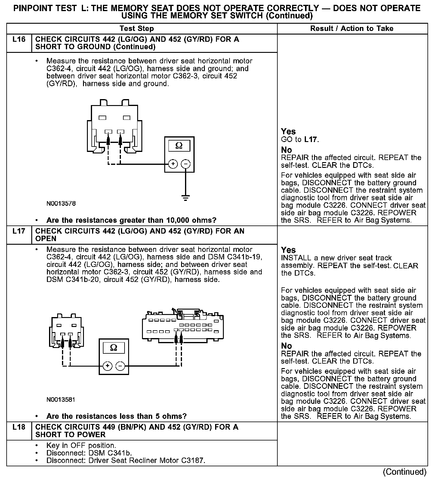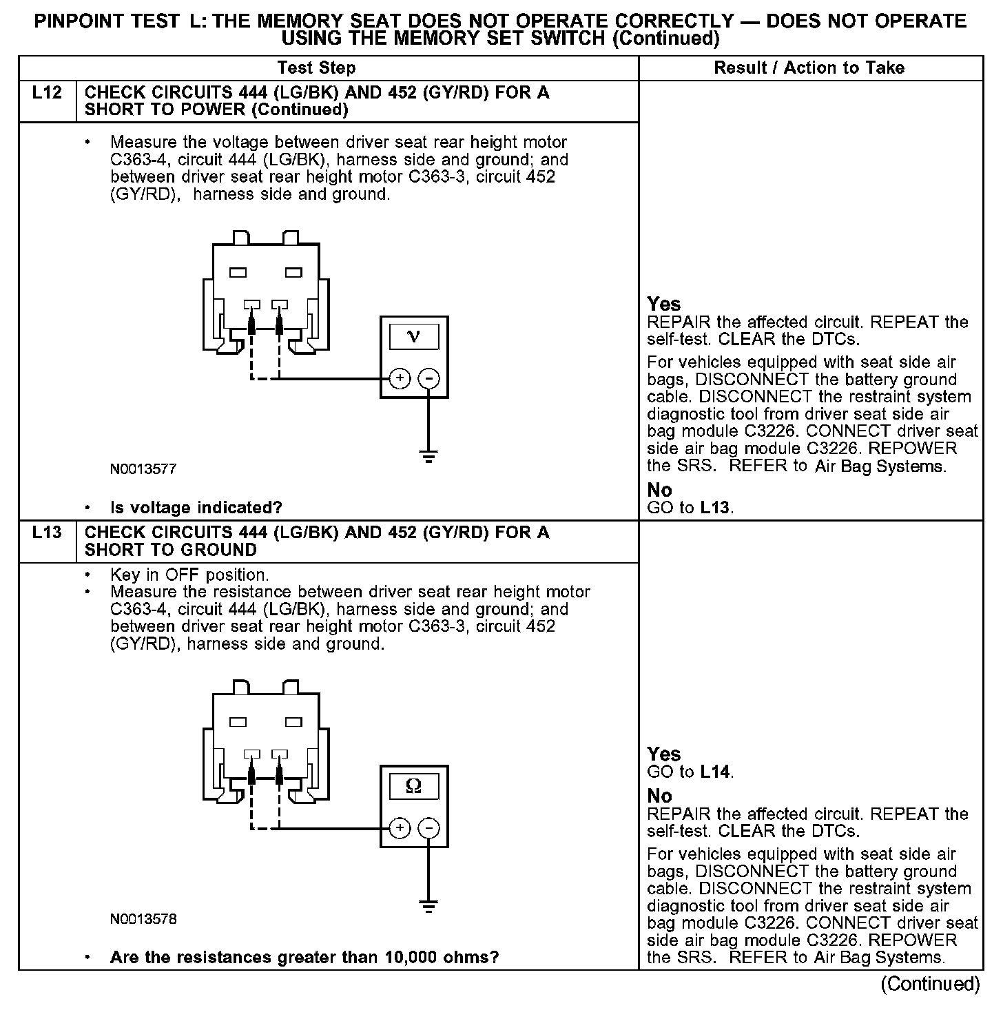 PINPOINT TEST L: THE MEMORY SEAT DOES NOT OPERATE CORRECTLY - DOES NOT OPERATE USING THE MEMORY SET SWITCHL1-L3: