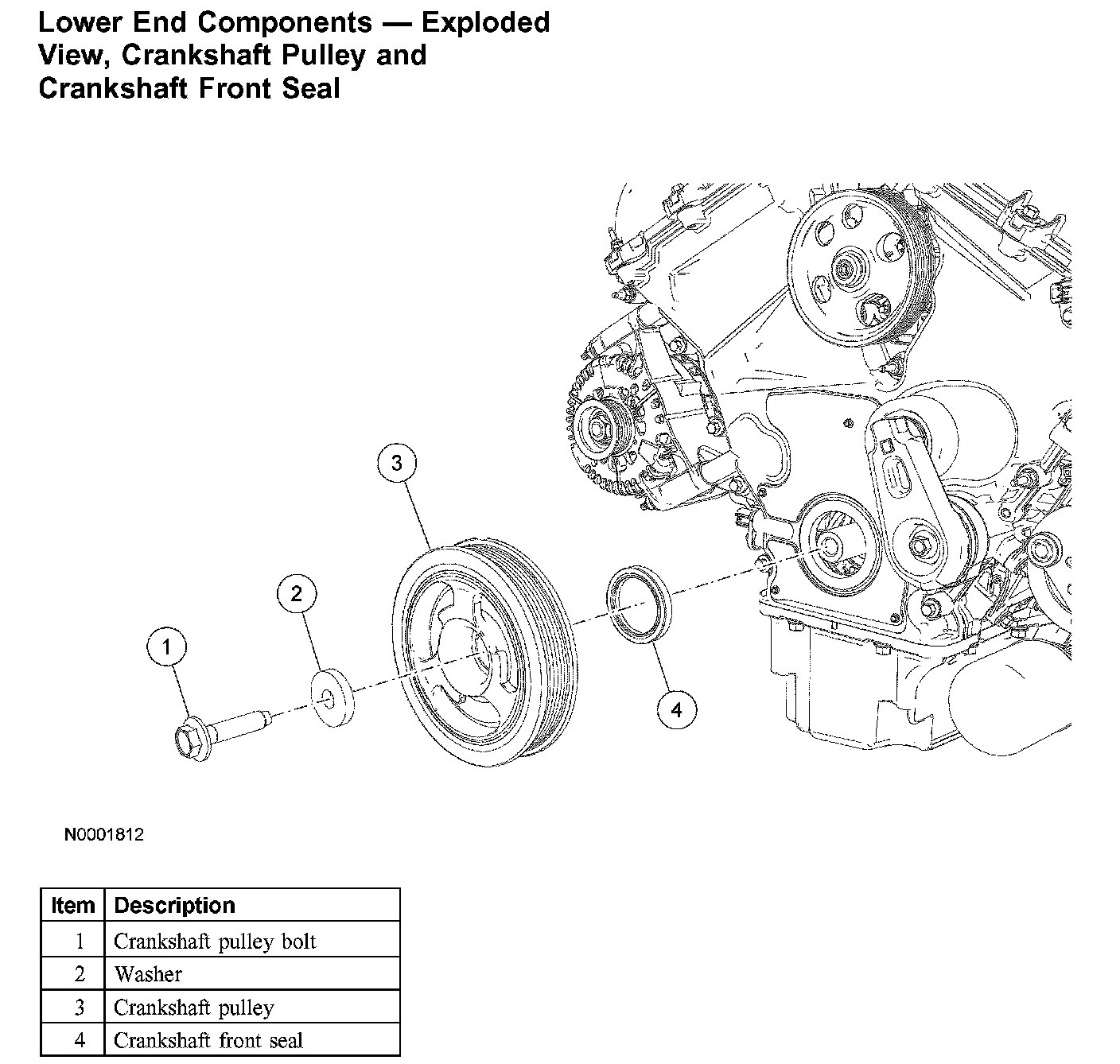 Lower End Components - Exploded View, Crankshaft Pulley and Crankshaft Front Seal: