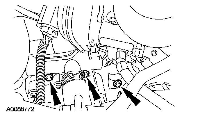 10. Position the RH exhaust manifold heat shield and install the 3 bolts.