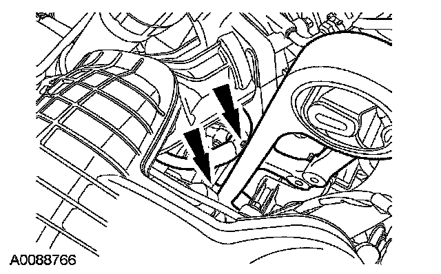 39. Attach the pin-type retainers to the subframe and connect the RH catalyst monitor sensor electrical connector.