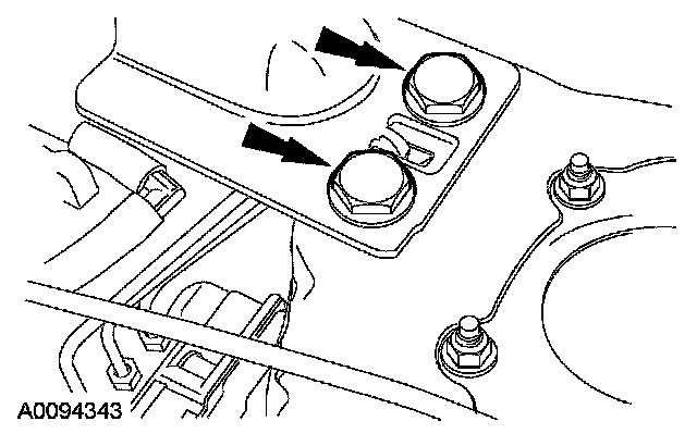 38. Remove the 2 pin-type retainers and the torque converter lower access plug.