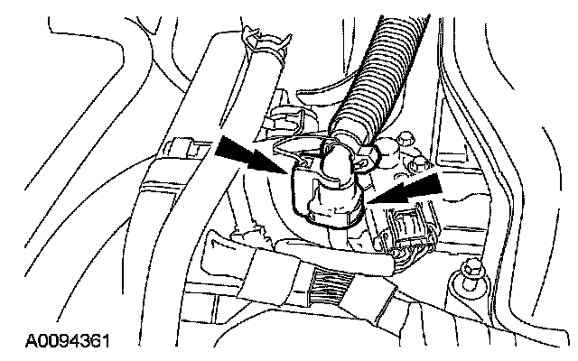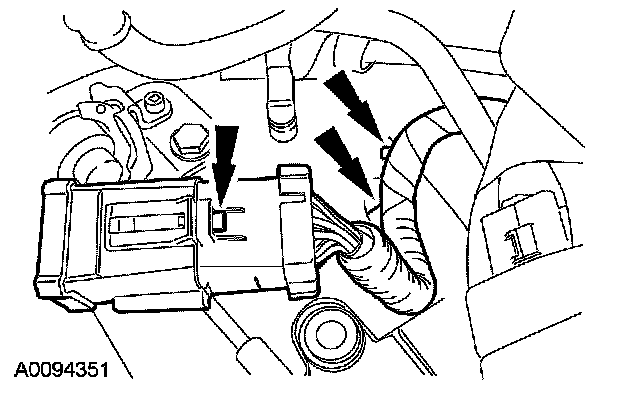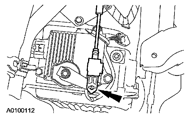 ^ Detach the electrical connector from the shift cable bracket.