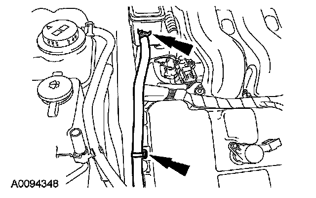 17. Disconnect the power steering reservoir hose and detach the retainer.