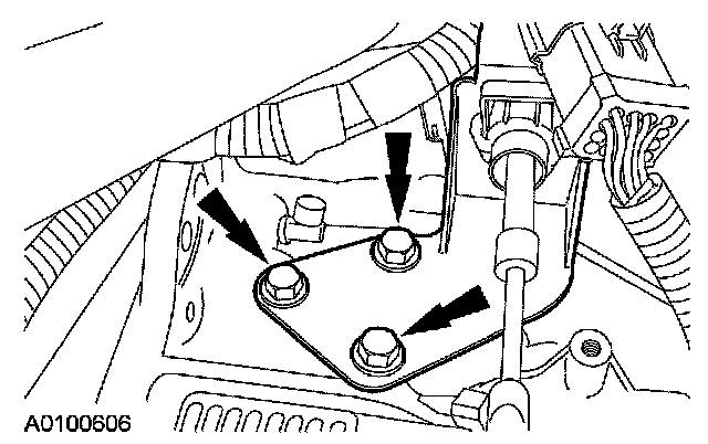 25. Remove the 3 shift cable bracket bolts and position the cable and bracket aside.