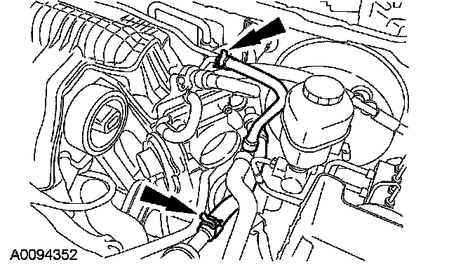 26. Disconnect the heater hose and the positive crankcase ventilation (PCV) coolant hose.