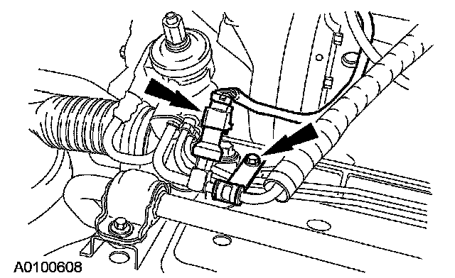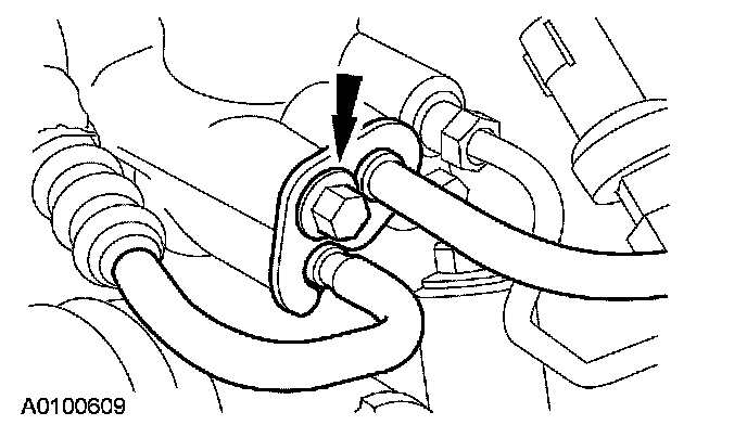 51. Remove the bolt and disconnect the power steering fluid tubes.