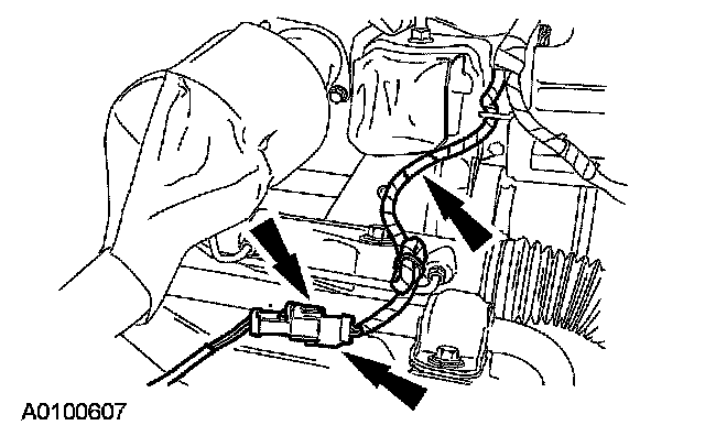 ^ Disconnect the electrical connector from the shift cable bracket.