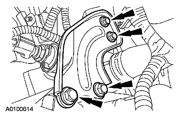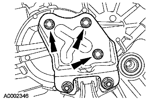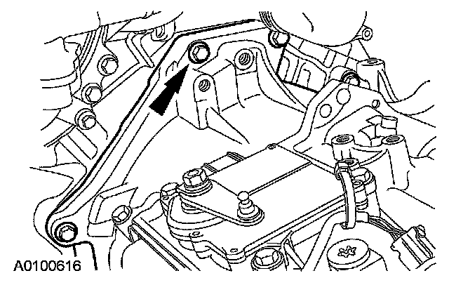 80. If equipped, remove the upper power transfer unit (PTU) bracket bolts and the bracket.