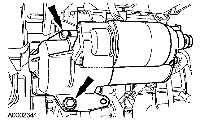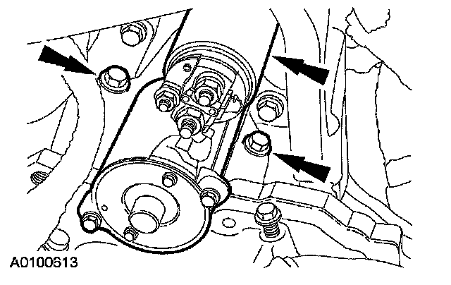 69. Remove the 2 bolts and the starter motor.