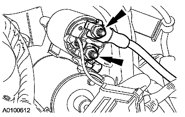 61. Remove the nuts and disconnect the starter motor wiring.