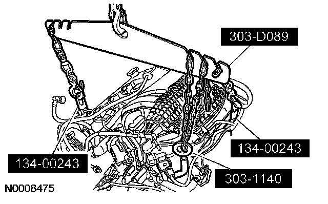 75. Using the special tools and a suitable engine crane, support the powertrain.