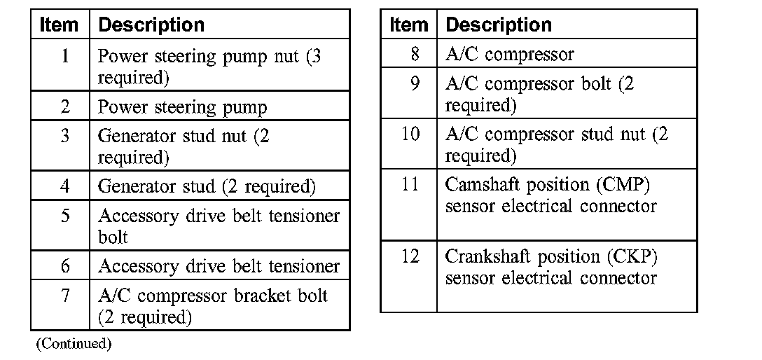 13. Remove the 2 A/C compressor bracket-to-engine front cover bolts.