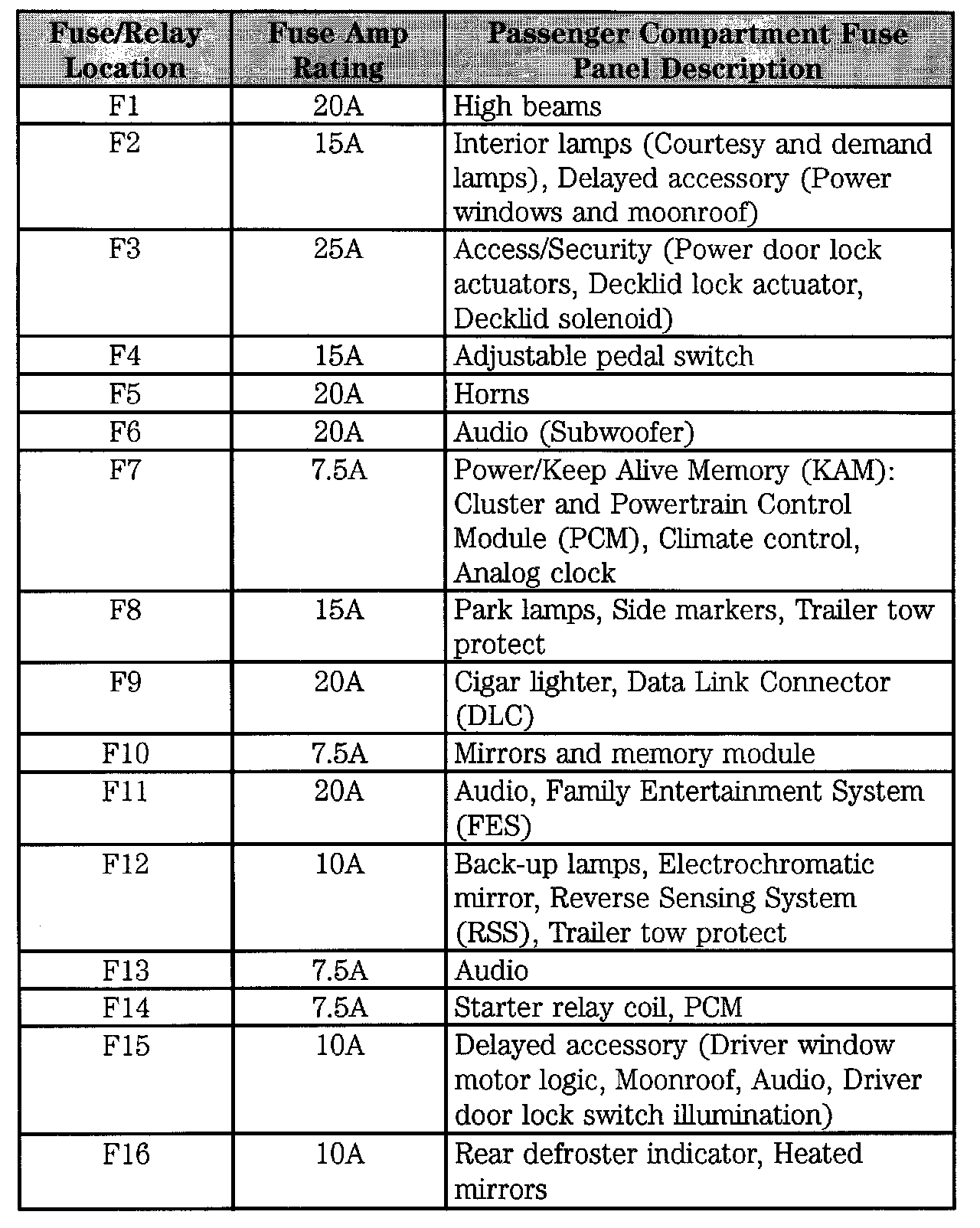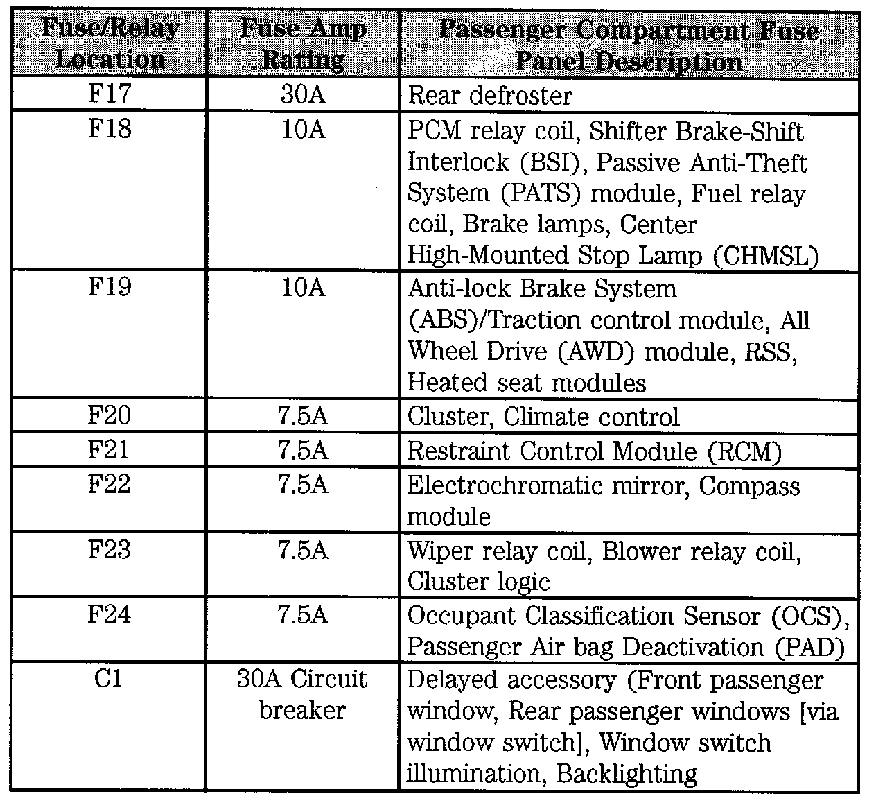 Passenger Compartment Fuse Panel