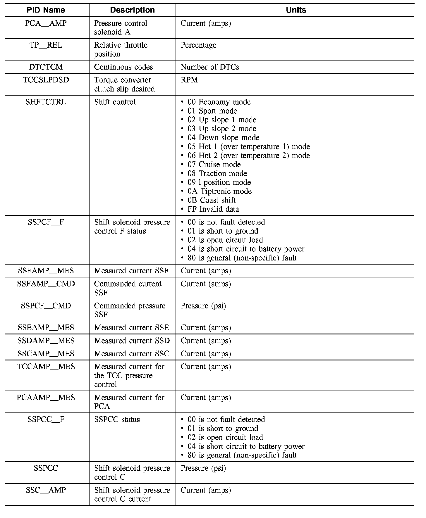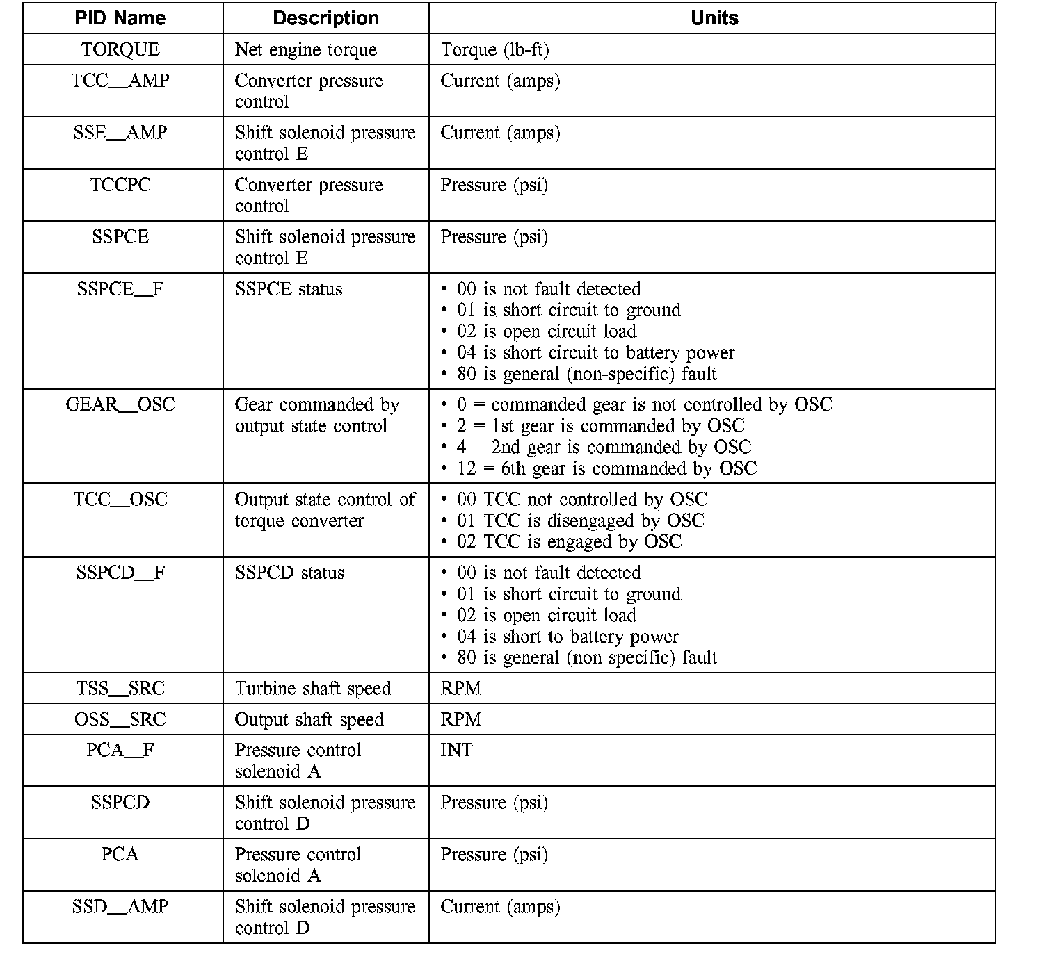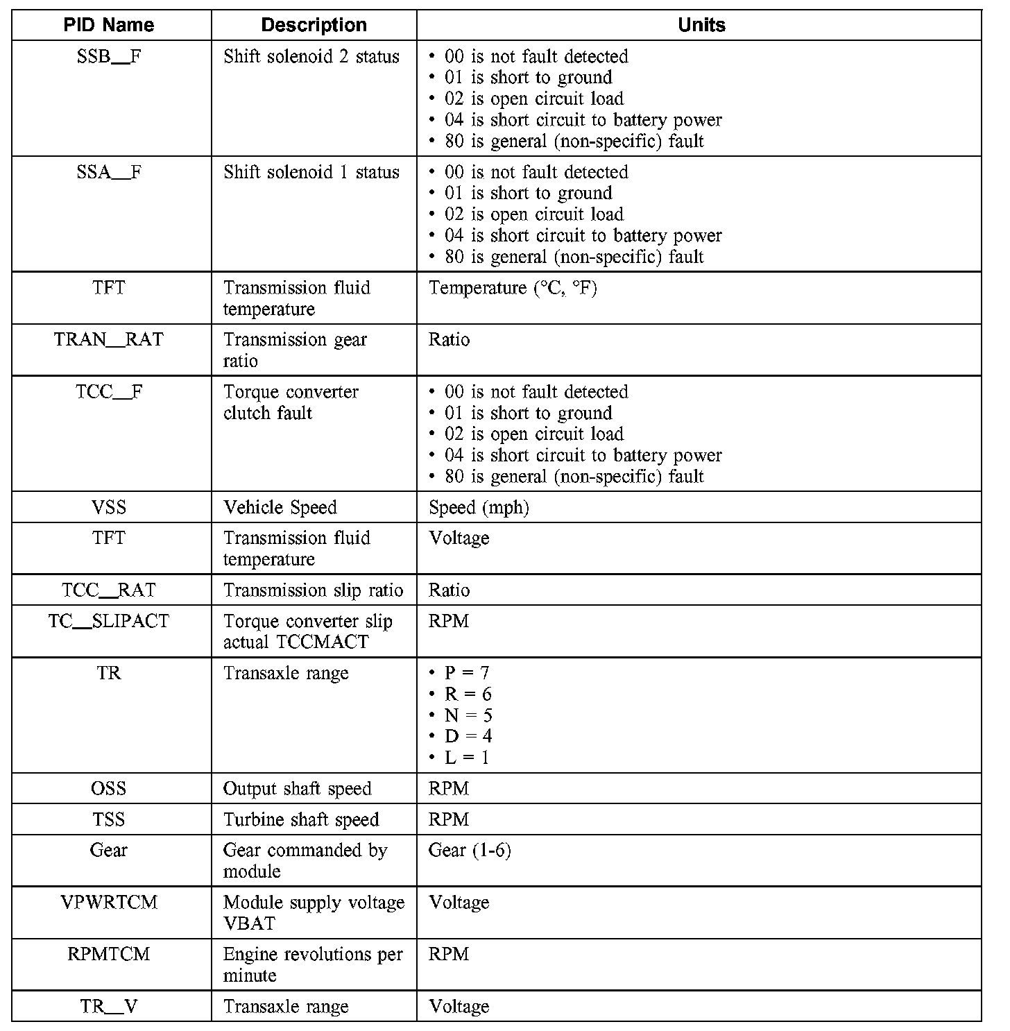 Diagnostic Parameters Identification (PID) Chart (Part 2):