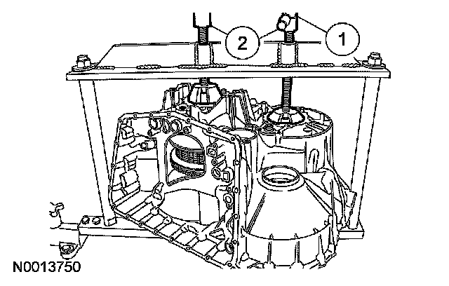 1 Hold the transaxle case level. Turn the secondary forcing screw 2 complete turns.