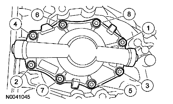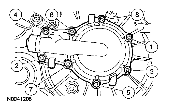 19. Using new bolts, install the secondary cover and tighten in the sequence shown, in 2 stages: