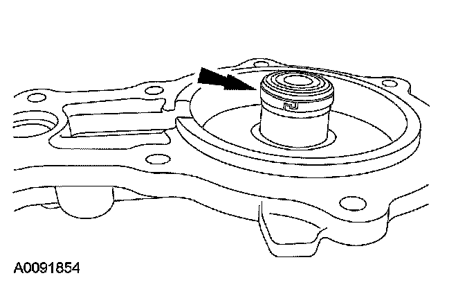 ^ If the final measurement (D) is not within specification, install a new selective snap ring (either thicker or thinner) until the clearance specification is achieved.