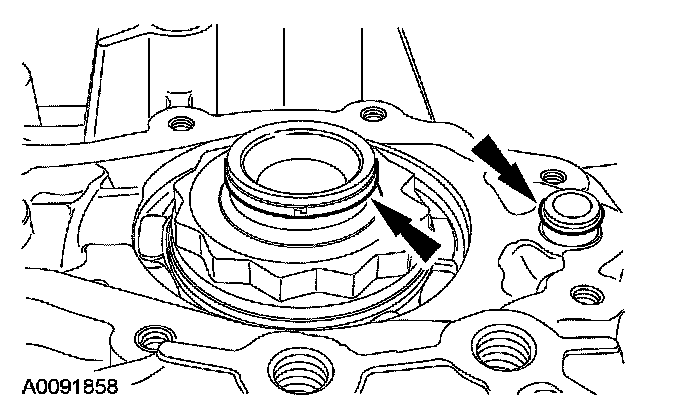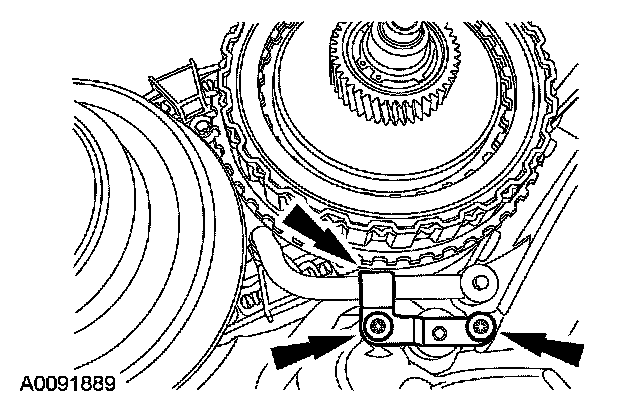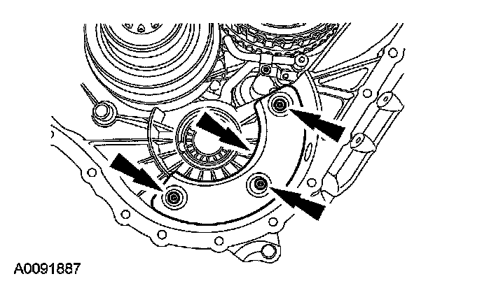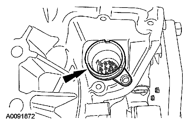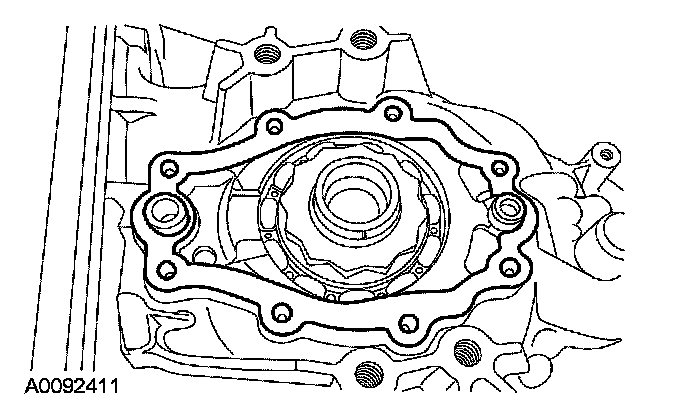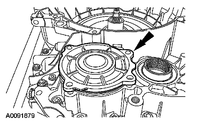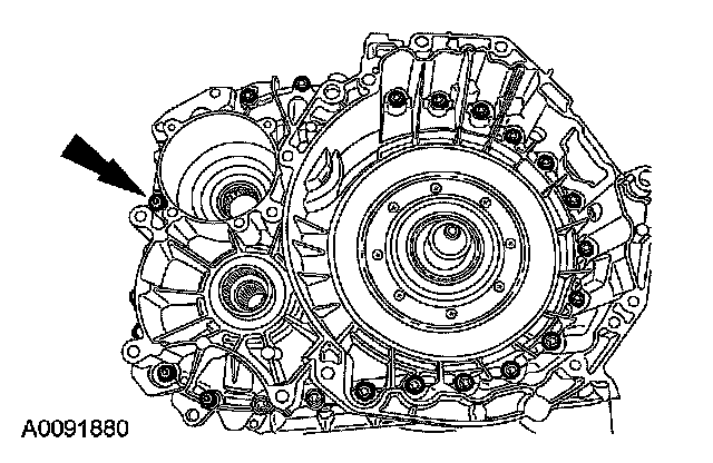 18. CAUTION: The output shaft speed (OSS) sensor has a spacer under the sensor for the bolt. This is used for keeping the sensor a specific distance from the differential gears.