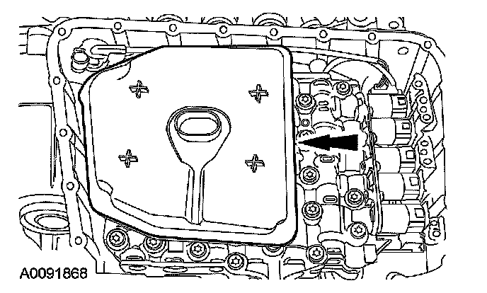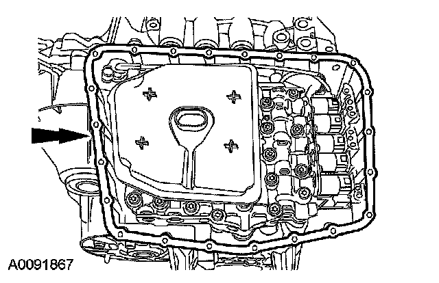 12. Remove and discard the transaxle fluid pan gasket.