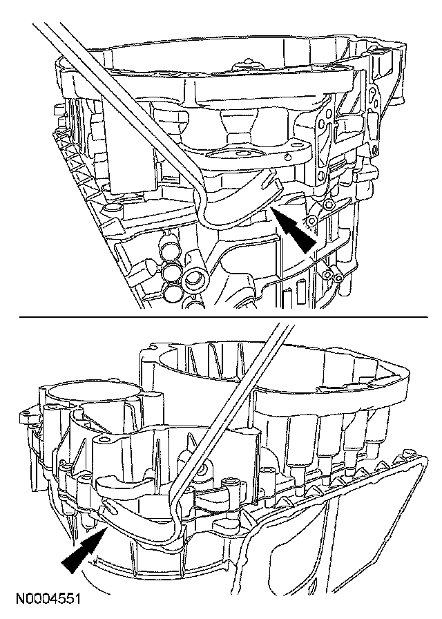 5 Remove and discard the torque converter clutch pressure feed tube.