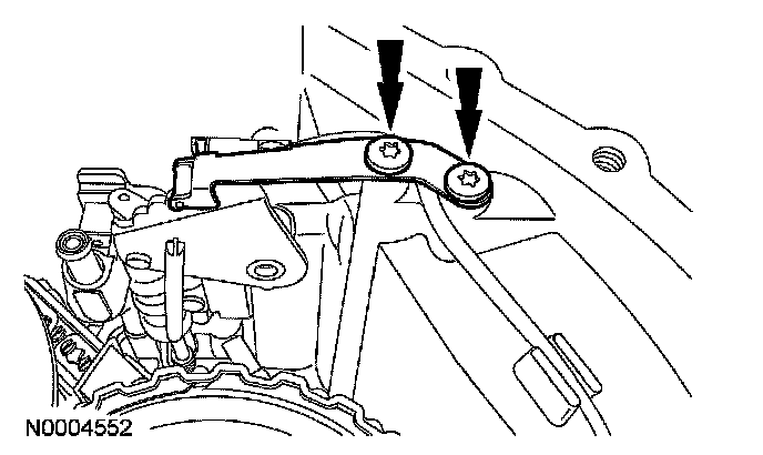 Remove the 2 bolts and the manual lever detent spring.