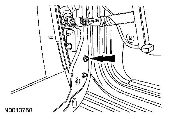 3. Remove the door glass track bolt.