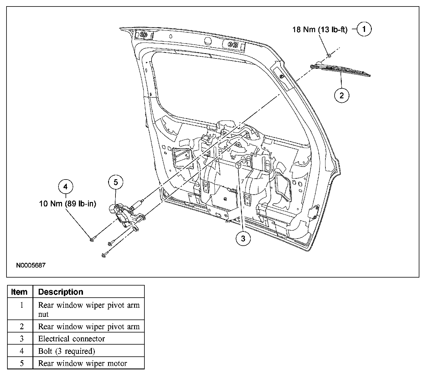Wiper and Washer System - Exploded View, Rear