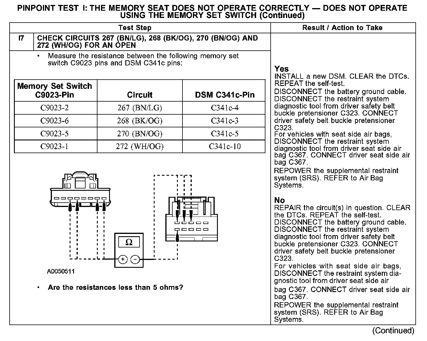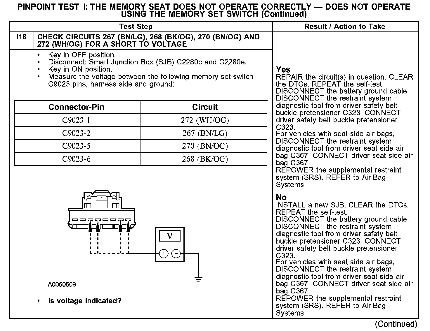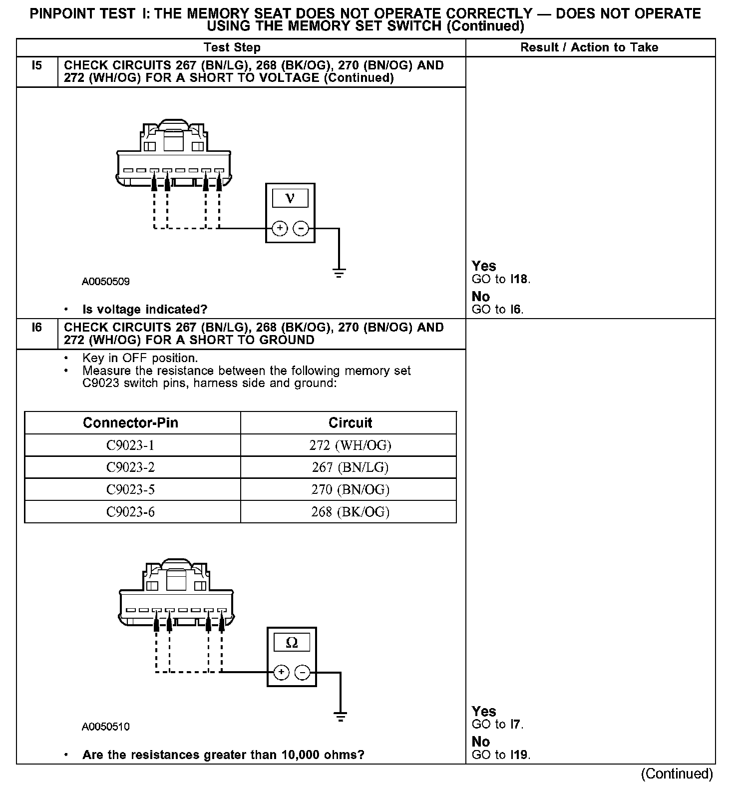 PINPOINT TEST I: THE MEMORY SEAT DOES NOT OPERATE CORRECTLY - DOES NOT OPERATE USING THE MEMORY SET SWITCHI1-I2: