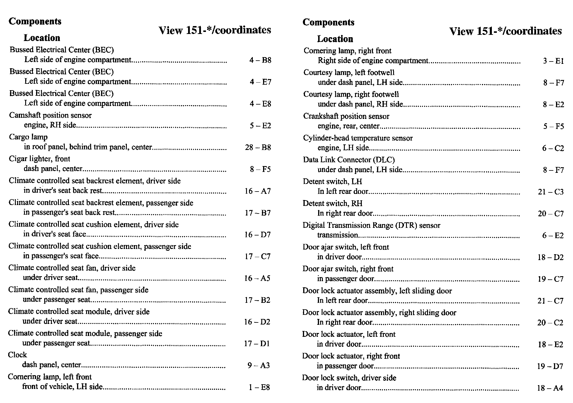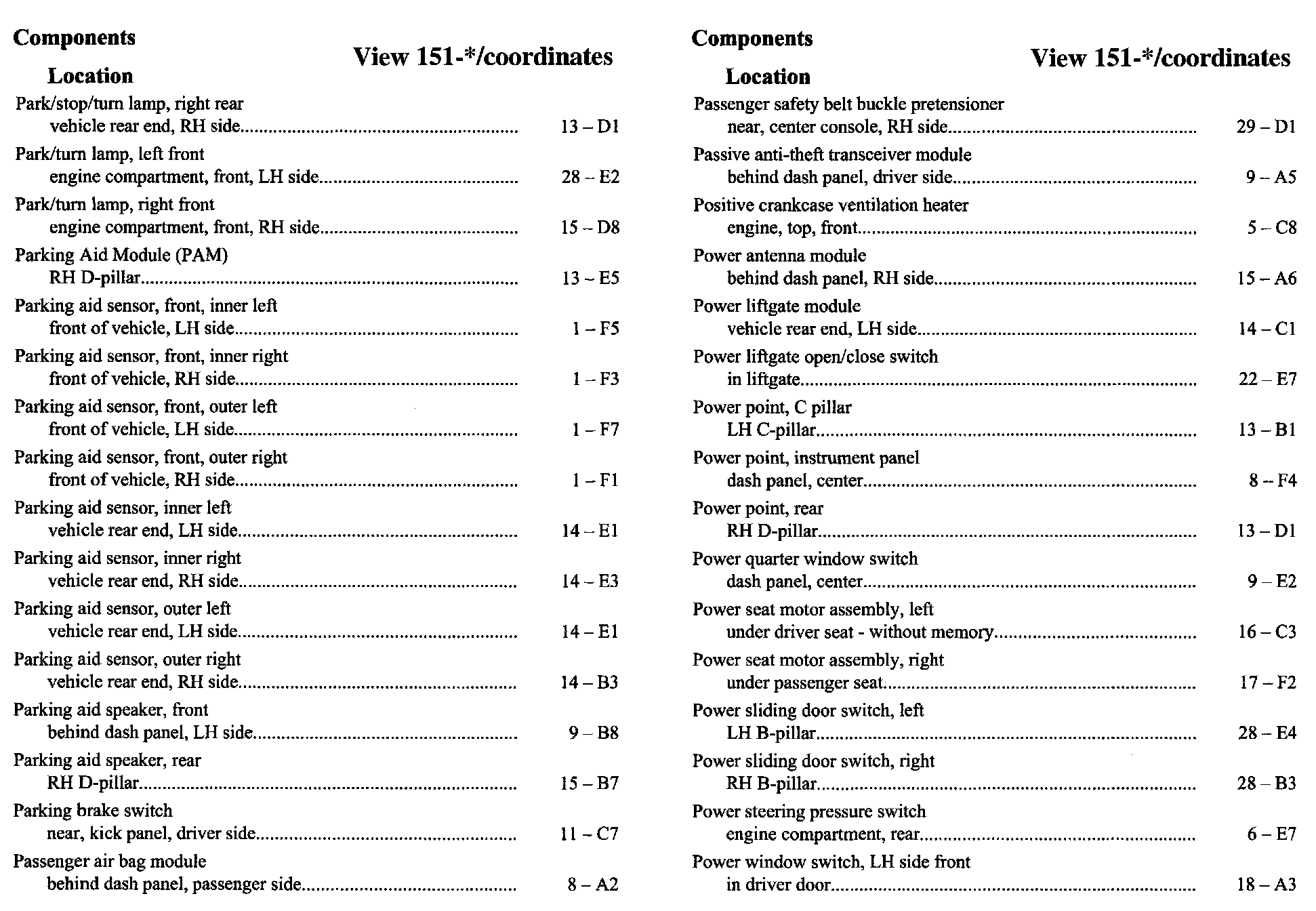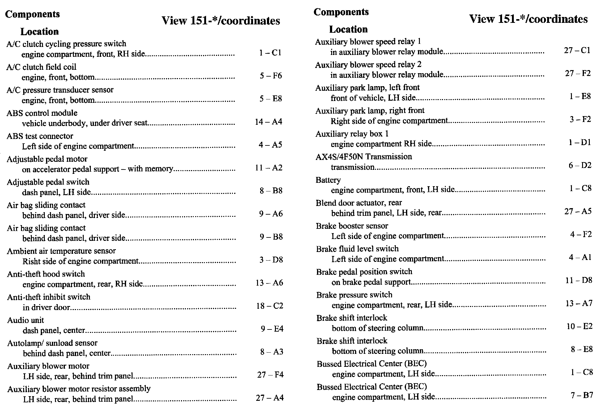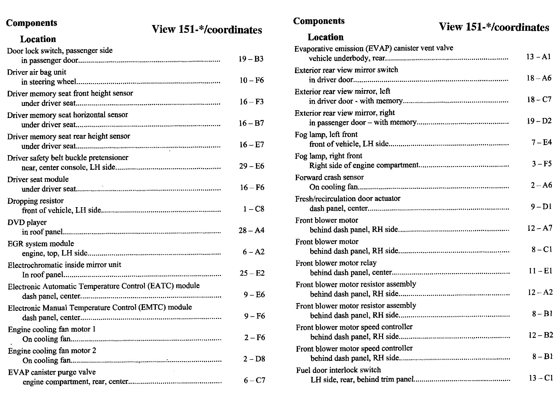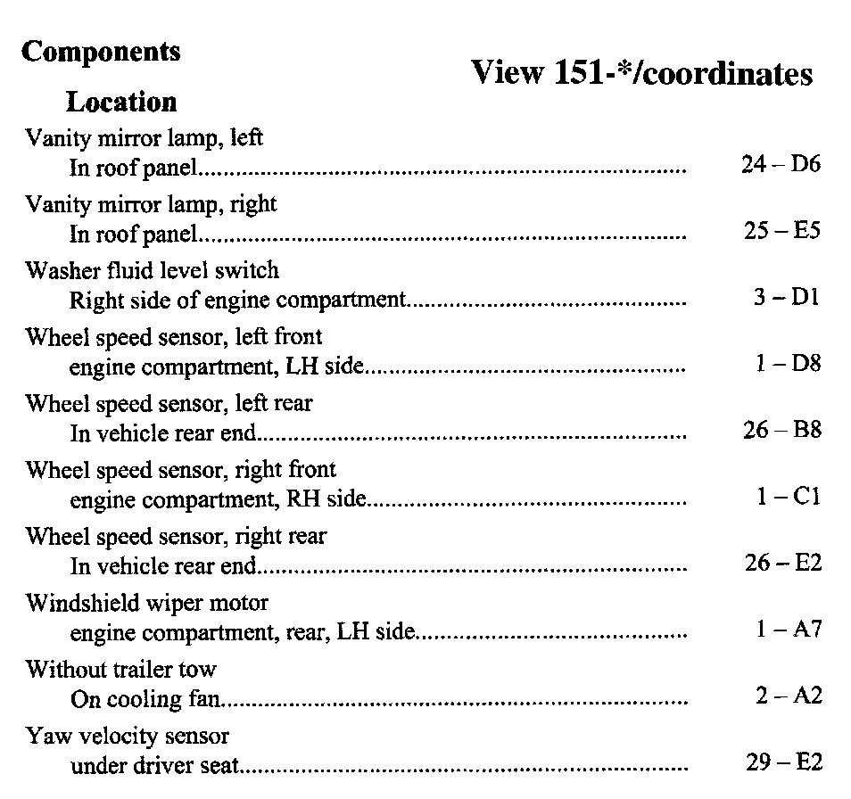 Component Location Index