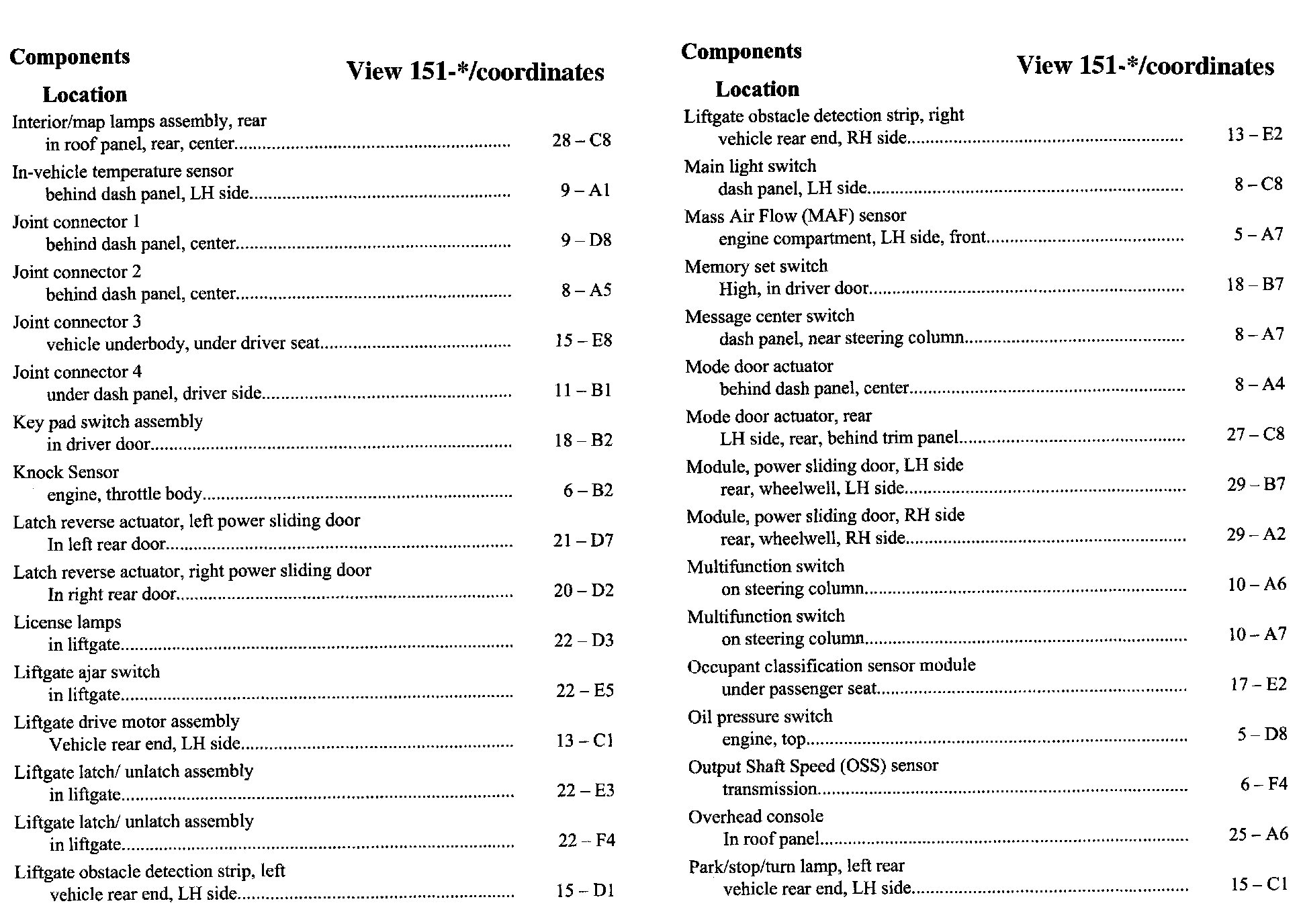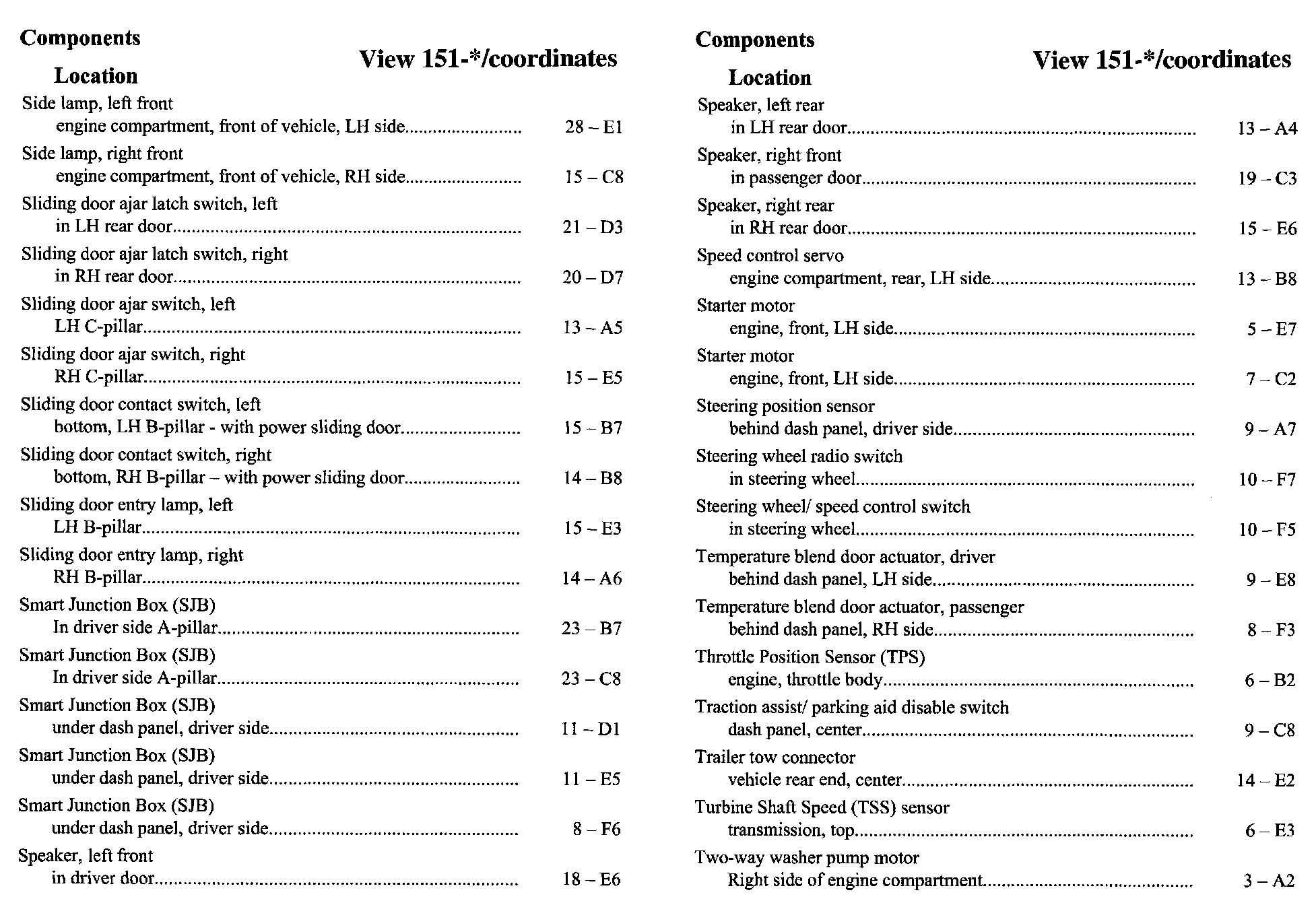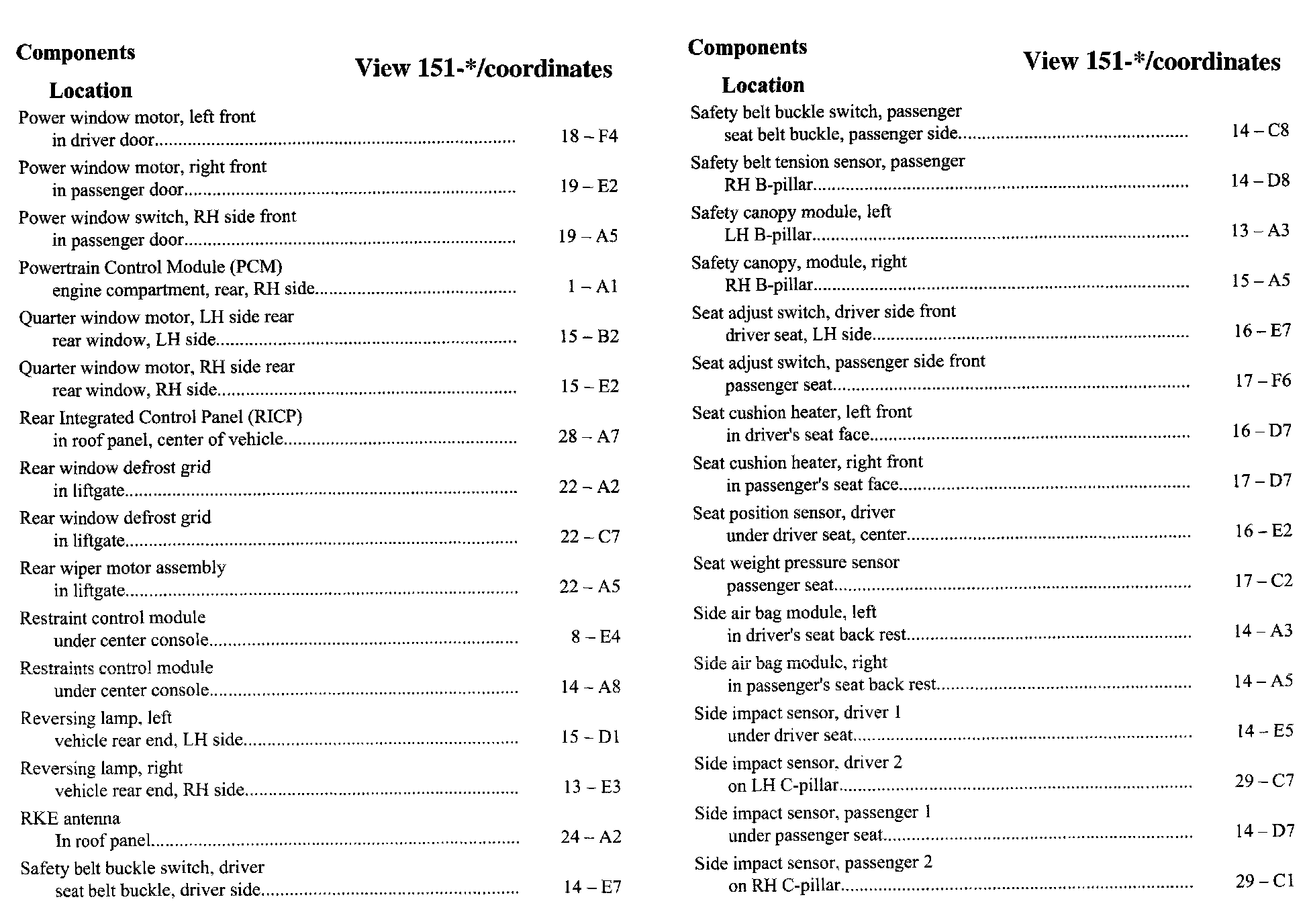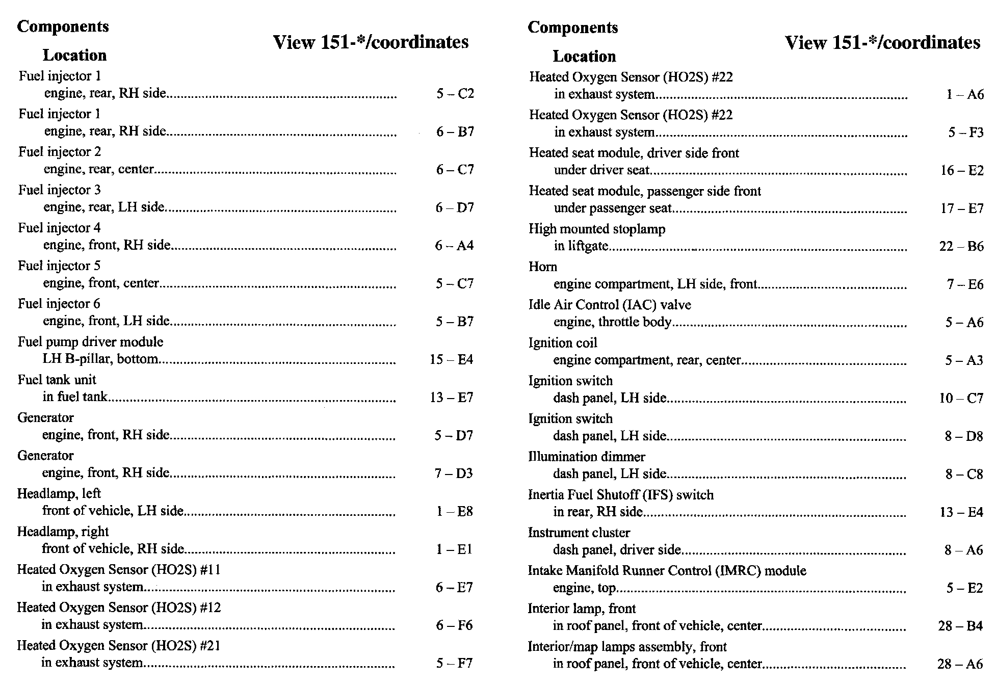 Component Location Index