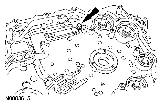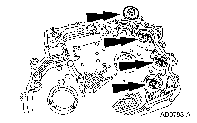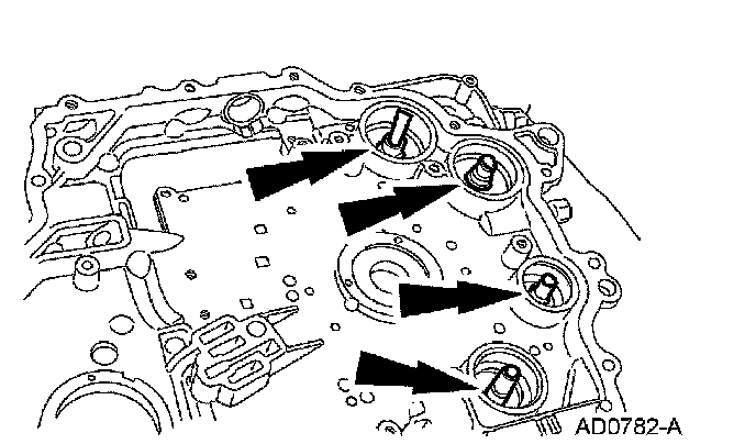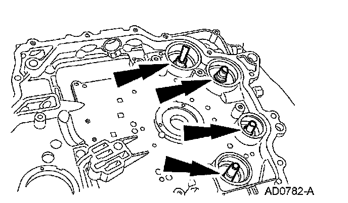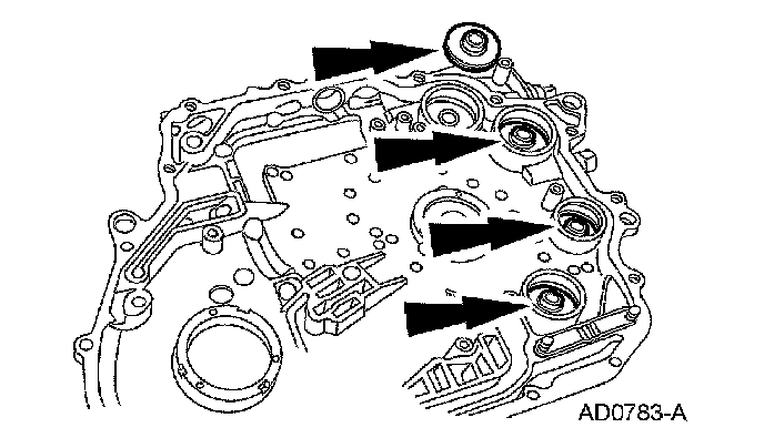 7. NOTE: The use of petroleum jelly will hold the accumulator piston shafts in place while assembling the chain cover.
